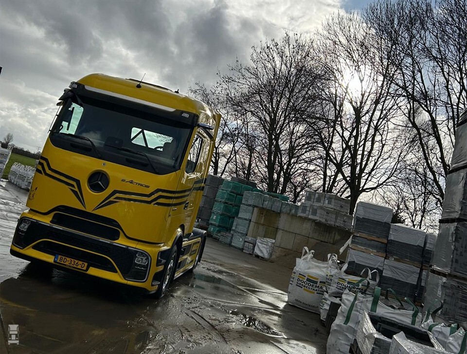 De Mercedes-Benz is goedgekeurd voor 50 ton totaalgewicht en voorzien van vele opties. Zo beschikt hij niet alleen over het StyleLine-pakket, maar ook over het ExtraLine-pakket. Ook het veiligheidspakket ontbreekt niet. De truck is uitgerust met Servotwin-besturing. De cabine is luchtgeveerd en voorzien van een goede geluidsinstallatie. De elektrische vrachtwagen heeft aan beide zijden een laadklep.