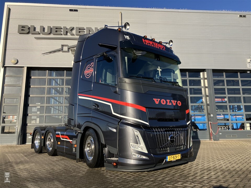 De Volvo FH Aero Globetrotter werd niet voorzien van overdreven veel accessoires. Dat past niet bij zo’n aerodynamisch ontwerp. Buiten de luchthoorns op het dak werd er niet veel opgeschroefd. Bewust koos Hanzen niet voor een aparte lichtbak, maar kwam de bedrijfsnaam in de standaard lichtbak. Met wat kleuraccenten op de sjieke grijze lak ontstond toch een indrukwekkend geheel.