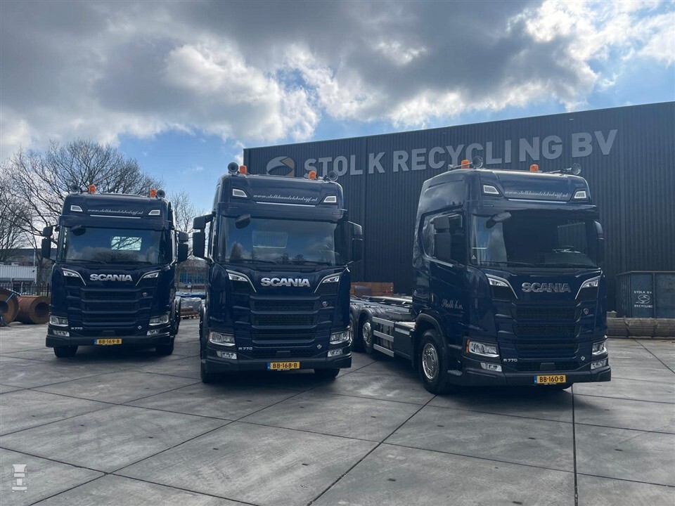 Onlangs werd het derde exemplaar geleverd en is het trio compleet. Drie stoere R770 vierassers, geleverd door Scania Alblasserdam. Stolk Recycling zet ze in voor het transport van metaal. Het bedrijf, dat al meer dan 125 jaar bestaat, recyclet en handelt hierin. Duurzaamheid is hierbij van groot belang. De keuze voor 770 pk sterke Scania’s lijkt hierbij tegenstrijdig, maar goed gereedschap gaat langer mee. Bovendien geldt zo’n V8 tegenwoordig in tijden van arbeidskrapte ook als secundaire arbeidsvoorwaarde.
