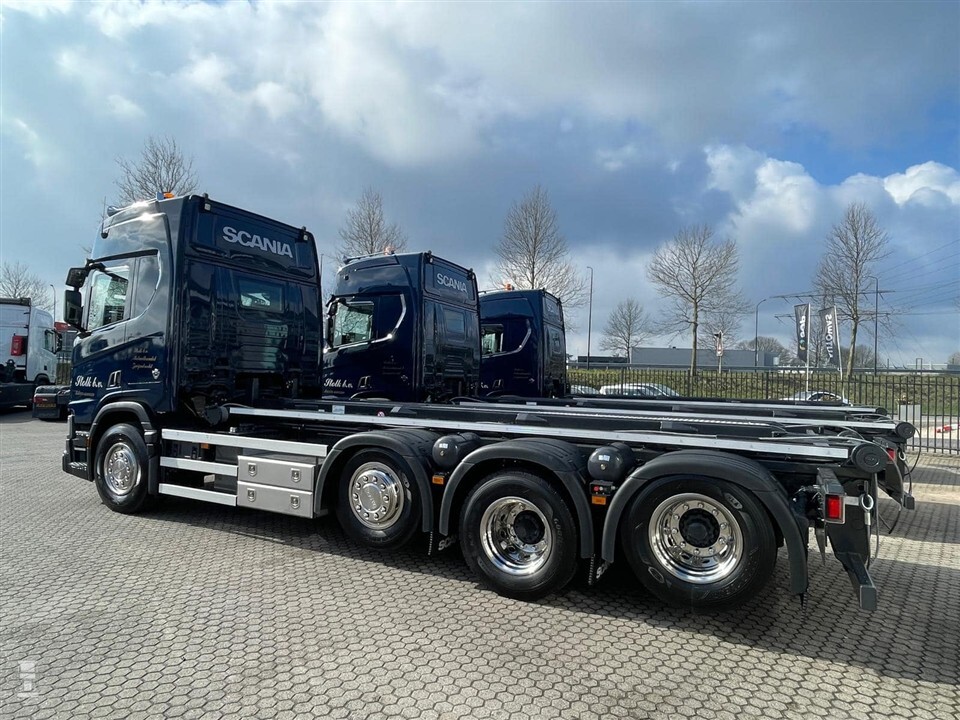 Omdat een V8 alleen nog niet genoeg is, zijn de Scania’s voorzien van alle luxe in de cabine. Ook alle veiligheidssystemen zijn uiteraard aanwezig. Voor het eerst op deze website zien we ook de nieuwe kentekenreeks op de foto, die onlangs is ingegaan. Het kabelsysteem van de drie Scania R770 containerauto’s is verzorgd door NCH uit Hoogeveen. Hiermee zijn ze helemaal klaar voor het zware werk.