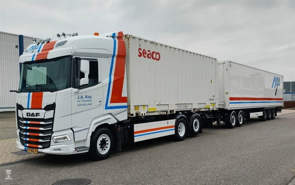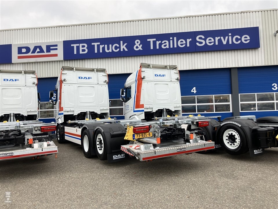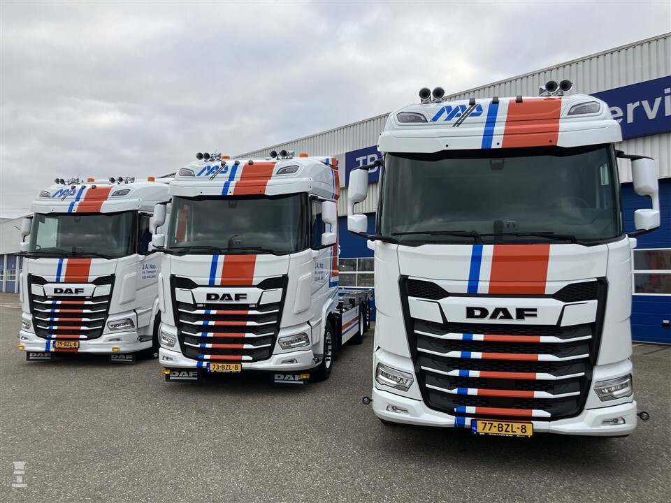De drie DAF bakwagens zijn voorzien van de ruime XG-cabine en hebben 480 pk onder de vloer. Ze zullen worden ingezet als trekkende deel van LZV-combinaties, die we in Nederland maar ook in Duitsland kunnen tegenkomen. De 6x2 bakwagens zijn voorzien van een BDF-systeem, zodat eenvoudig wissellaadbakken of containers vastgezet kunnen worden.