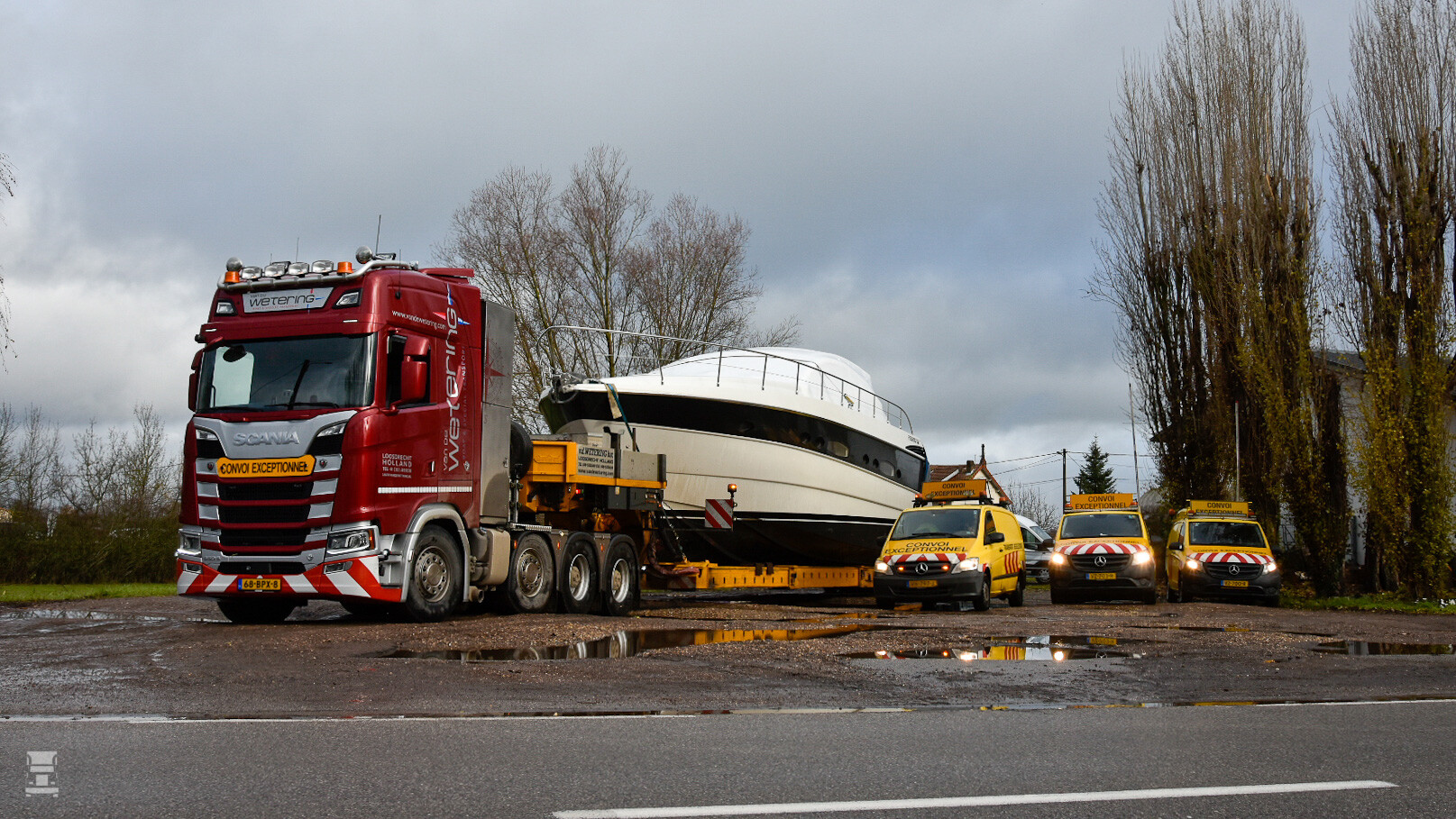 Van de Wetering uit Loosdrecht, specialist in het internationaal vervoer van luxe jachten over de weg, neemt deze maand de laatste van drie Scania 650S 8x4 zwaar transporttrekkers in gebruik. Het bijzondere aan de voertuigen is de extra korte draaicirkel door een aanpassing van Scania Laxå Special Vehicles. Het is voor het eerst in lange tijd dat Van de Wetering weer Scania’s koopt.