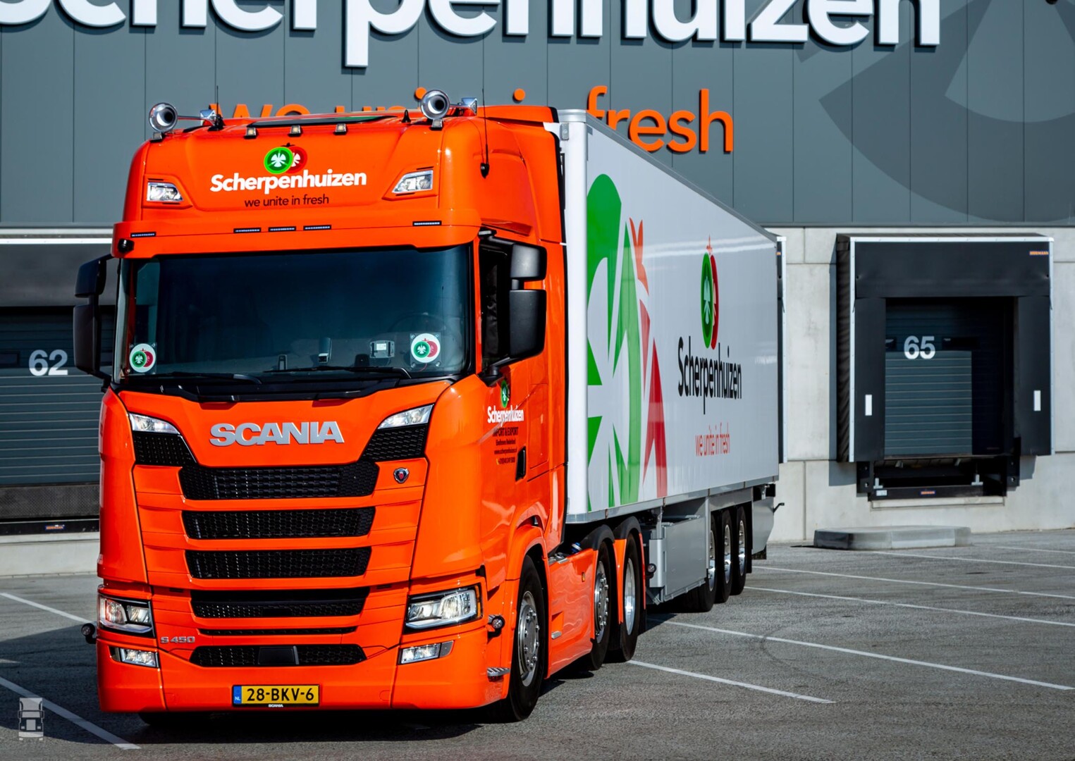 Groente en fruit im- en exporteur Scherpenhuizen in Eindhoven kocht onlangs voor het eerst drie New Generation Scania’s S450 6x2 trekkers met een gestuurde voorloopas en de 450 pk zescilinder SCR-only motor. De overstap naar Scania had alles te maken met de goede service van Scania Eindhoven. Die doet al sinds jaar en dag het onderhoud aan het complete trailerpark van Scherpenhuizen, inclusief onderhoud en de noodzakelijke CFK-keuringen aan de koelmotoren.