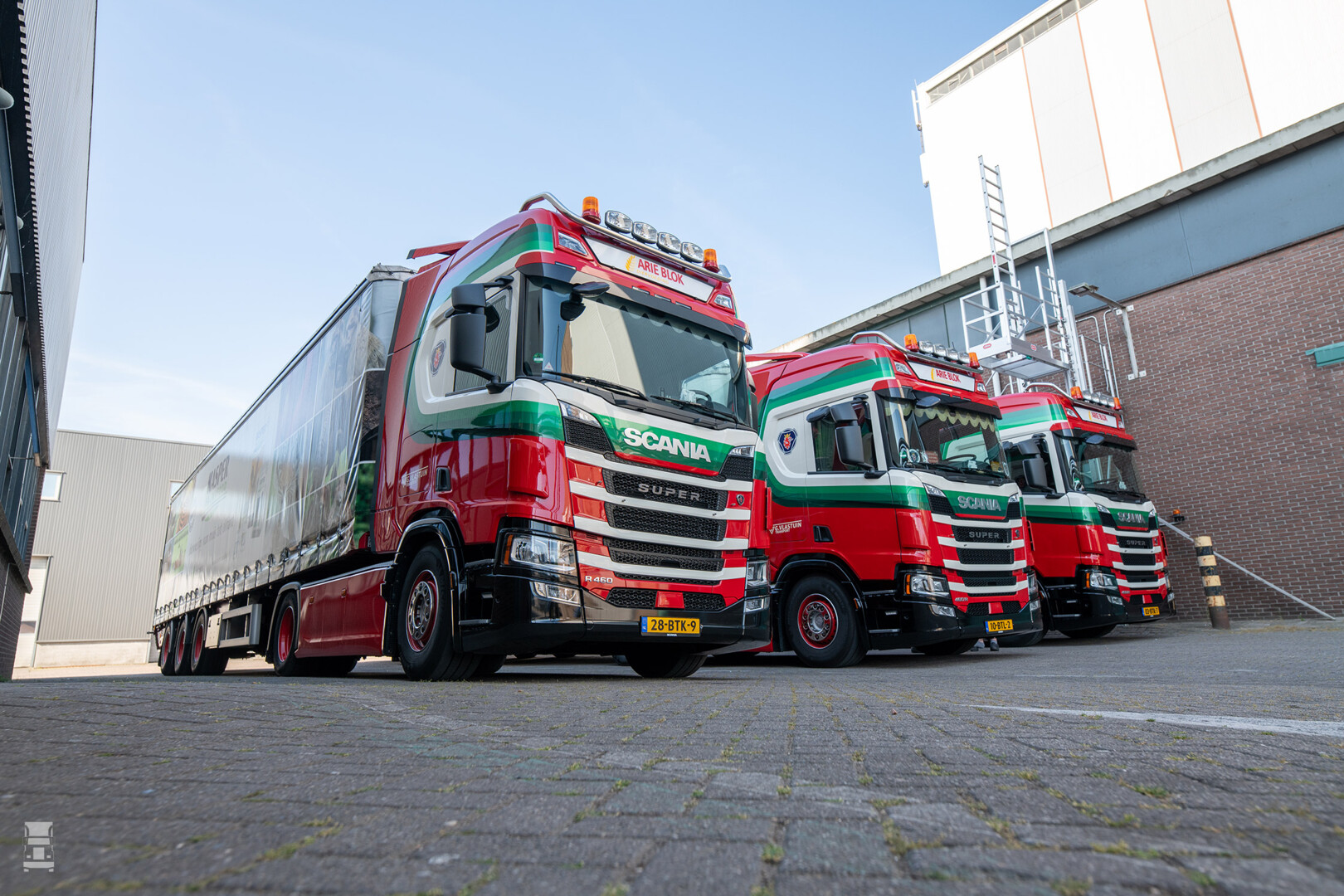 ”Al ons andere werk is wel altijd te hoog, te breed en te zwaar. Dat is onze corebusiness waarbij we tot 140 ton gaan. Maar daarvoor zetten we andere auto’s in. Zo hebben we naast deze drie nieuwe Supers ook nog vijf lage Scania 530S V8 6x2/4 trekkers, 2 lage Scania 500S 4x2 trekkers en één R500 AB6x2*4NB kraan chassis gekocht. Normaal rijden wij 10 jaar of rond één miljoen kilometer met een voertuig voordat we hem inruilen. Met de lange levertijden van tegenwoordig rijden we nu iets langer door met het bestaande materiaal. Wij zijn heel erg beducht op onvoorziene stilstand. Dat hebben we de laatste tijd proberen op te lossen met extra preventief onderhoud. De nieuwe voertuigen signaleren zelf wel dat er iets aan staat te komen. Maar 10 jaar terug bestond dat nog niet. Dus ga je eerder onderdelen wisselen. Ook omdat wij al het onderhoud zelf doen. Daarvoor hebben we een prima relatie met de Scaniadealer in Barneveld die voor ons alle benodigde onderdelen op tijd levert en één keer per jaar de APK doet en de voertuigen van de elektronische updates voorziet.”