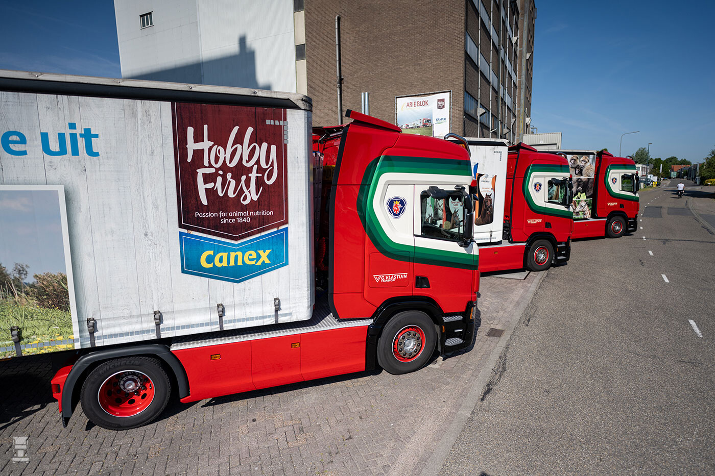 “Nu kun je je afvragen hoe speciaal het afleveren van pallets met 20 kilo zakjes diervoeder is. Maar dat is wél onze geschiedenis”, vertelt operationeel verantwoordelijke Gijsbert Vlastuin. “Ons bedrijf begon namelijk in 1980 als mengvoederhandel. In 1983 kwam daar speciaal transport bij dat op een gegeven moment zo’n vlucht nam dat we de mengvoedertak hebben afgestoten. Maar voor één klant rijden we nog steeds met diervoederproducten. En daarvoor zijn deze nieuwe trucks.”