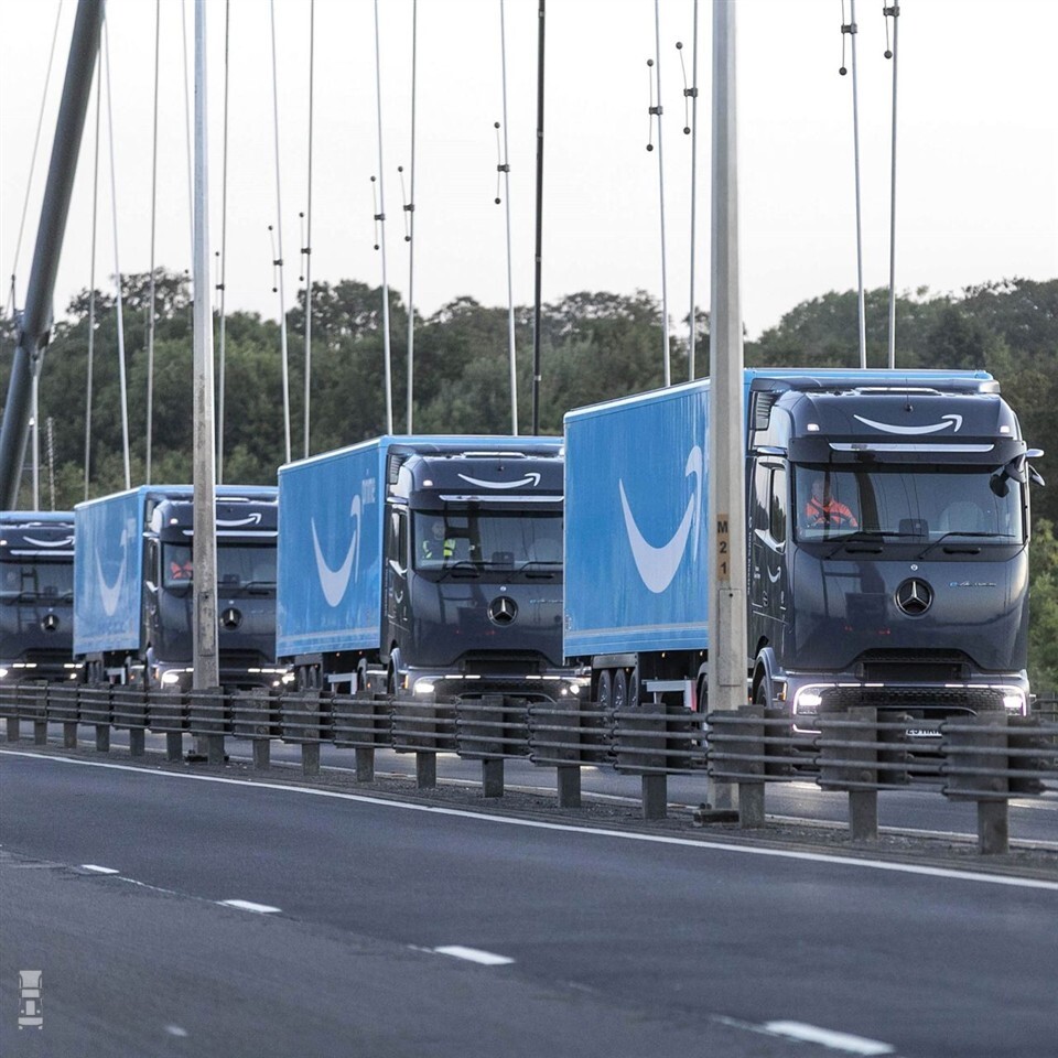Ondertussen zijn de vrachtwagens afgeleverd aan Amazon. Deze maakte er gebruik van door een serie bijzondere foto’s te maken van rijen eActros 600’s achter elkaar. Ongetwijfeld zullen ook automobilisten hun ogen uitgekeken hebben. Zo val je in ieder geval op met deze Mercedessen!