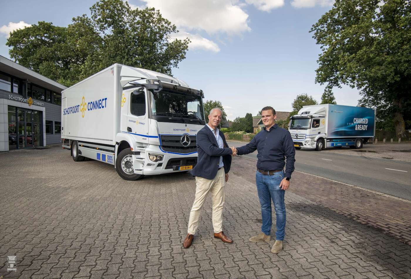 Het bedrijf zet al langer elektrische trucks in op vaste routes. Voortaan gebeurt dat ook met de twee nieuwe eActros bakwagens. Het gaat om een nieuwe eActros 400 en een eActros 300 die eerder als demo werd ingezet om er ervaring mee op te doen. Die truck werd na de positieve ervaringen overgenomen door Schotpoort Connect. De chauffeurs zijn erg enthousiast volgens directeur Marc Seesing: De eActrossen worden door verschillende chauffeurs gereden. Ze ervaren het allemaal als een zeer plezierig transportmiddel, vooral vanwege de rust in de cabine. Dat komt door het lage geluidsniveau en het ontbreken van schakelmomenten. Als leuke spin-off zien we ook dat een eActros uitdaagt om zuinig te rijden. De chauffeurs gebruiken hun rempedaal bijna niet meer en regenereren op die manier dus zoveel mogelijk energie.”