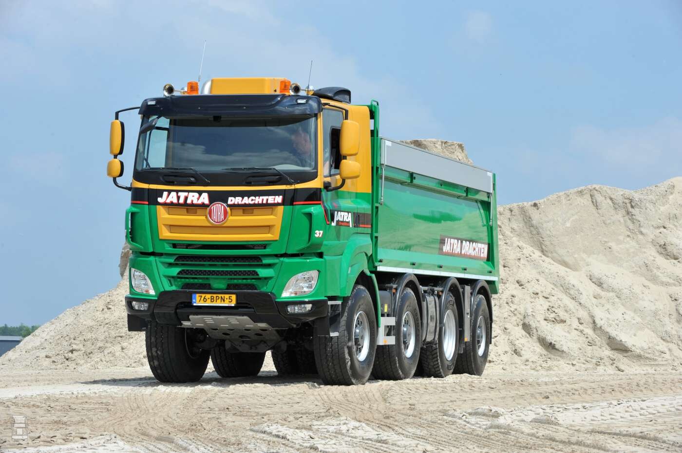 De Tatra Phoenix is voorzien van de MX13 krachtbron met 480 pk in combinatie met de ZF TraXon geautomatiseerde transmissie. De truck is goed voor een GVW van 46 ton en realiseert een netto laadvermogen van 28 ton. De Tatra Phoenix 8x8 is voorzien van dubbele montage op de derde as. Dat is een optie, want Tatra levert ook enkele montage rondom. Jatra koos voor de dubbele montage vanwege de grotere stabiliteit tijdens het kippen. De nieuwe Tatra is in de kleuren van het jubilerende Jatra een indrukwekkende verschijning op de weg.
