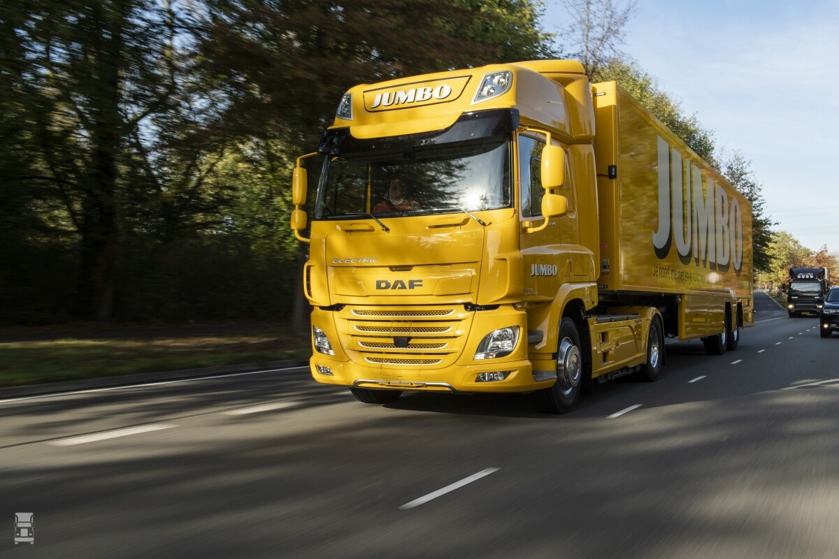 DAF Trucks heeft vandaag haar eerste volledig elektrische truck afgeleverd aan de Nederlandse supermarktketen Jumbo. De door DAF en VDL gezamenlijk ontwikkelde CF Electric wordt door Jumbo ingezet voor de bevoorrading van winkels in het zuiden van Nederland. Jumbo directeur Frits van Eerd ontving de sleutels van de DAF CF Electric uit handen van Harry Wolters, president van DAF Trucks en Willem van der Leegte, president-directeur van VDL Groep.
