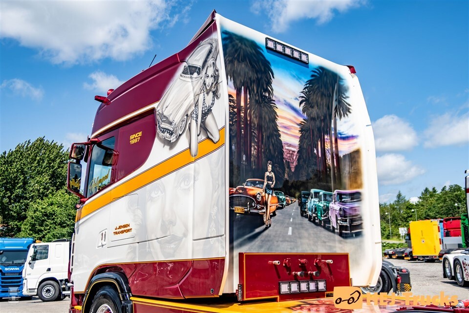 De opbouw duurde enkele maanden. Hoewel de Longline in Denemarken is opgebouwd, werd de Scania in Zweden gespoten. De Scania werd gespoten in de bedrijfskleuren, al is het ontwerp anders dan de rest van de vloot. Het thema van de Scania is Hollywood, wat duidelijk terugkomt in de special paint op de achterkant van de cabine. Hier zien we auto’s uit de jaren ‘50 met de Hollywood Hills op de achtergrond.