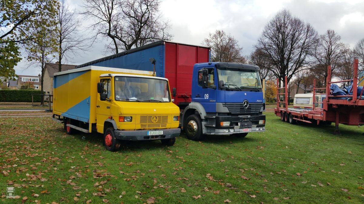 Verder troffen we een van de weinige nog operationele Atego's 1828. Dit was niet de beste truck die ze bij Mercedes hebben gebouwd, om het maar zachtjes te zeggen. Je ziet ze bijna nergens meer, maar deze is er nog gewoon. De Vario links daarentegen is er nog eentje uit de categorie Gaat Nooit Stuk.