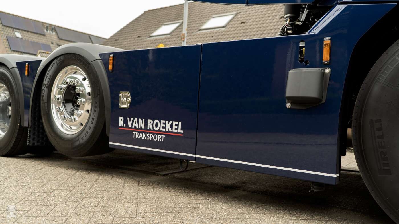 Als je in je eigen dorp een DAF dealervestiging hebt, en je kunt goed met het personeel, is dat ook een logische stap. De DAF die hij nu op de weg gezet heeft, is er ook eentje om door een ringetje te halen. Samen met Henk Ploeg van FilmPloeg truckdesign heeft hij de belijning bedacht. Een groot zwart vlak over de breedte met een subtiel wit lijntje, doorlopend over de verlengde FOX-zonneklep. Zo strak over de spiegelsteunen hebben we het nog niet vaak gezien op de NGD, maar het staat hem goed.