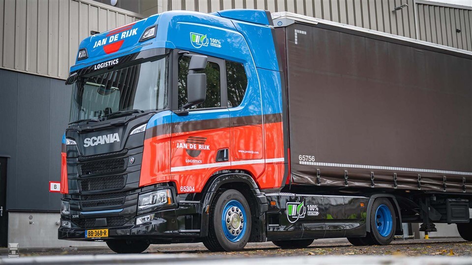 De elektrische Scania, type 33R, beschikt over een extra lage schotelhoogte van slechts 97,5 centimeter. Als LZV zet Jan de Rijk hem in voor lijndiensten in Nederland en Duitsland. Hierbij rijdt het bedrijf onder andere voor Scania zelf. Hiermee is Jan de Rijk zowel klant als leverancier van Scania. De inzet van de elektrische vrachtwagens is voor alle partijen een primeur, zeker in deze configuratie.