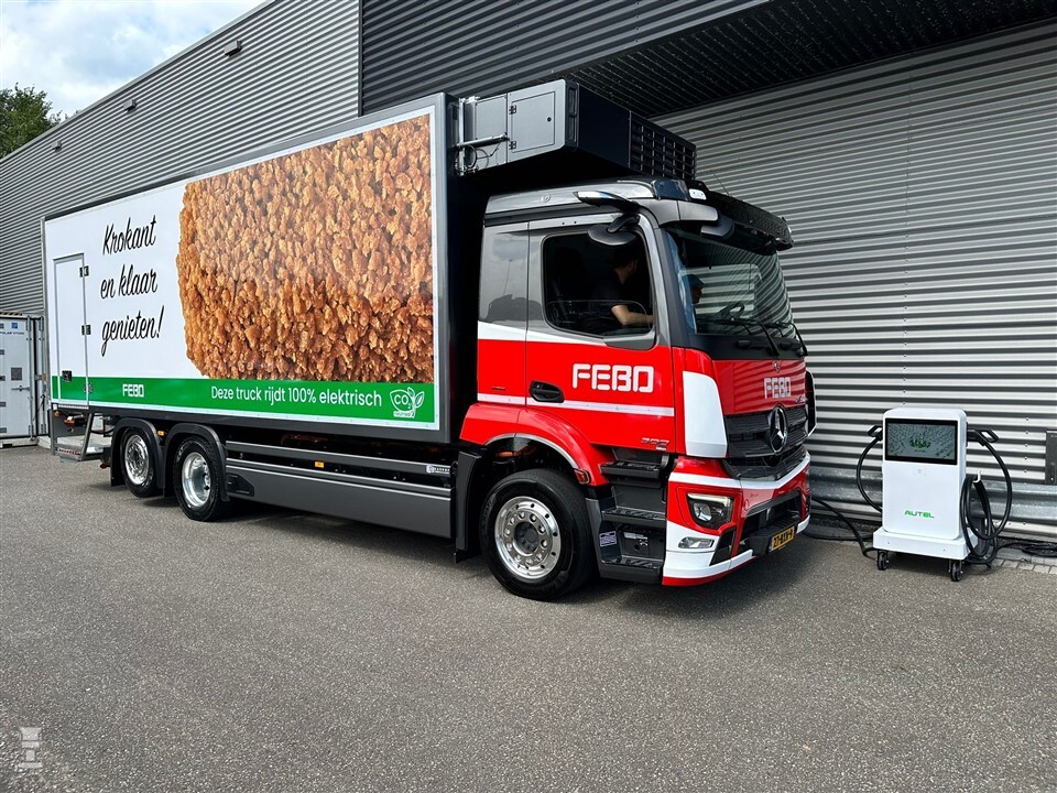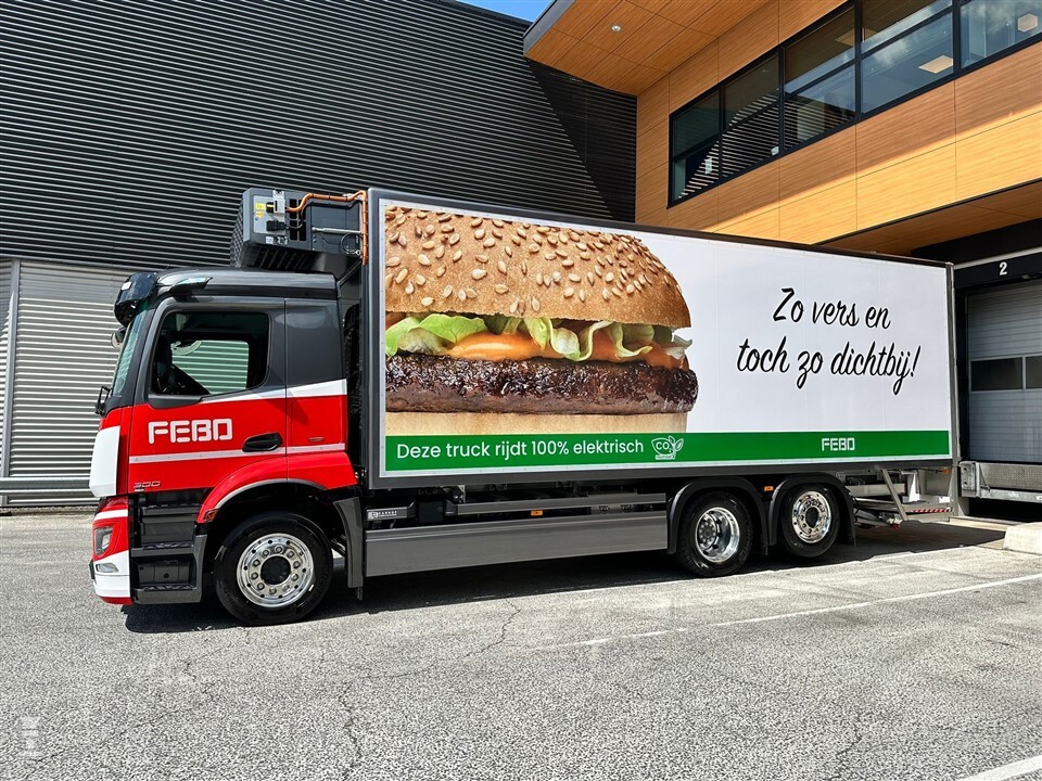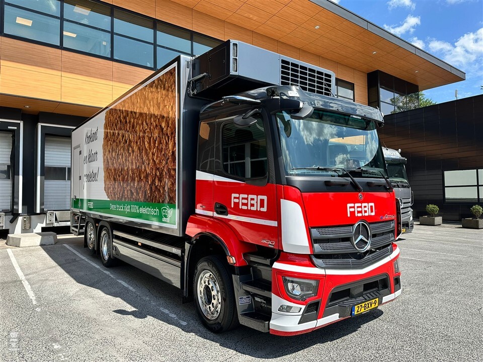 De Mercedes-Benz eActros 300 van FEBO is geleverd door Gomes Trucks Noord-Holland. De opbouw is uitgevoerd door Karhof Carrosserieën uit Assen: zij monteerden de JDK koelbak en Frigoblock koelmachine. Al met al laat FEBO zien dat een elektrische vrachtwagen helemaal niet saai hoeft te zijn.