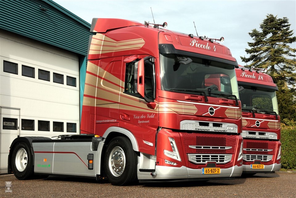 Piccolo 4 en Piccolo 18, dat zijn de twee voortrekkers van het transportbedrijf geworden. Het zijn Volvo FM Electric trekkers en het zijn de eerste zero-emissie vrachtwagens voor Van der Veld. Buiten een kleine opmerking op de zijfenders zie je er overigens niks van, dat ze elektrisch zijn. Je hoort het natuurlijk wel. Het is mooi om te zien hoe een transportbedrijf als Van der Veld hun elektrische modellen zo laten opgaan in de rest van de vloot.