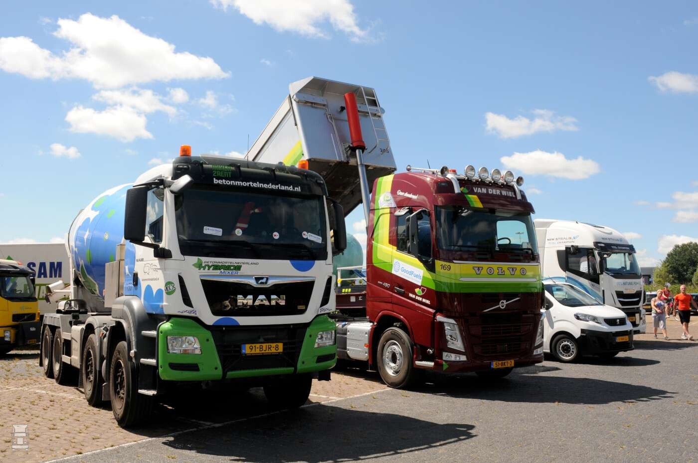 We telden eigenlijk maar één echte elektrische truck, namelijk de Emoss van Aad de Wit Verhuizingen. Verder reden er wel een aantal elektrische bussen mee, maar ook allerlei kleinere elektrische voertuigen zoals de kleine Bellier bestelwagen-pickup. Het merendeel van de deelnemende trucks reed echter op gas in de vorm van LNG of CNG. Gezien het karakter van het evenement was het de bedoeling dat er niets reed wat aangedreven werd door fossiele brandstoffen. Om die reden gaan we er dan maar van uit dat de gastrucks op biogas reden, al is dat natuurlijk niet te controleren.
