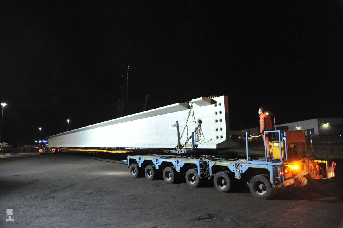 Toen er half november er 24 brugliggers, bestemd voor de Roggebotsluis in Kampen op transport moesten werd dat omrijden nog erger. De brug is met een lading van netto 145 ton geen optie, maar ook de lengte van 55 meter vormde een ware uitdaging. Die 55 meter is de lengte van de betonnen balken, de hele combinatielengte bedraagt zelfs een kleine 70 meter!