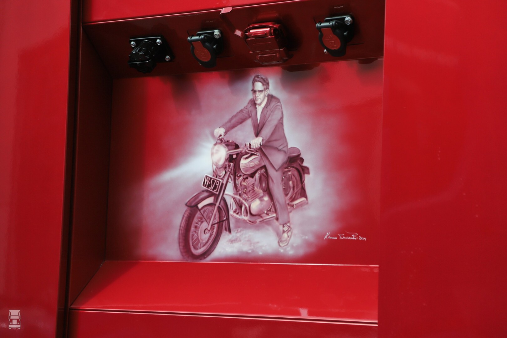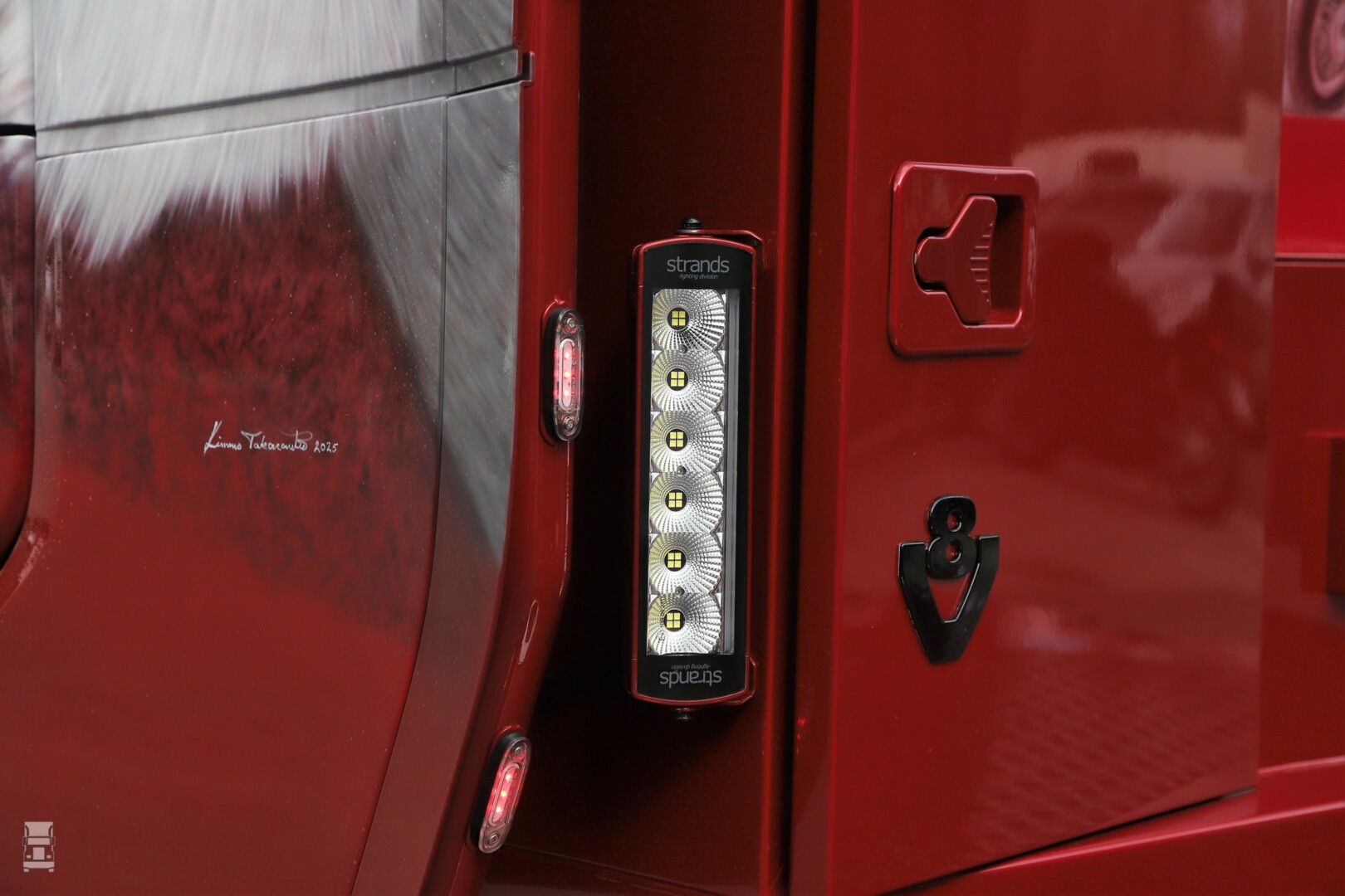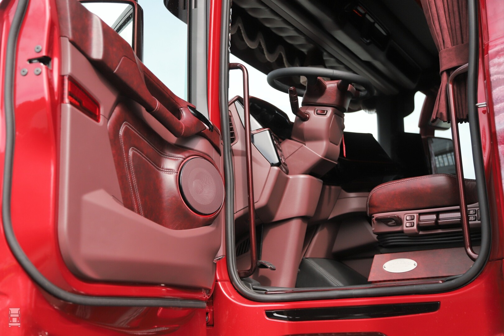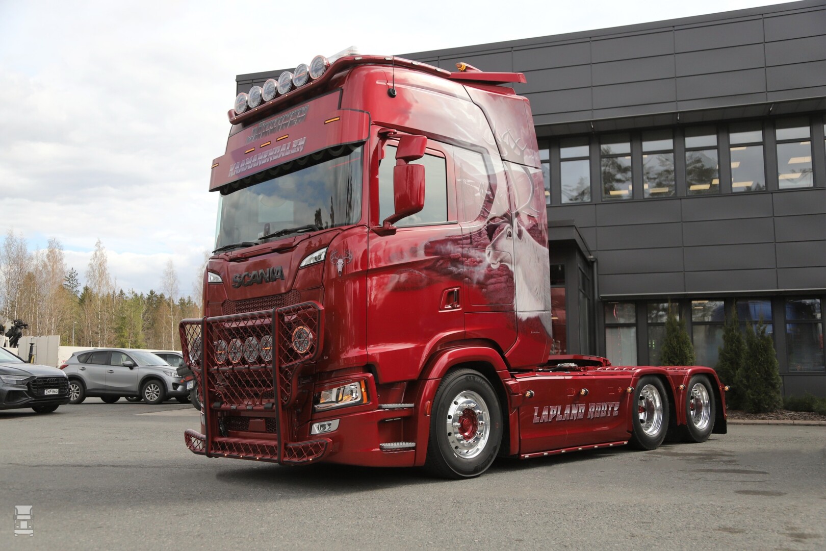 De Scania 770S werd in de huisstijl van het bedrijf gespoten met fraai special paint werk. Met een verlengde zonneklep, een stoere bullbar en op glanzende Alcoa's is het resultaat erg strak en fraai geworden. Achter de cabine is een fraaie kistenwand gebouwd, ook voorzien van special paint werk en verschillende lampen. Met afgedichte chassis en de speciale achterbumper met bloklampen maken het plaatje helemaal af.