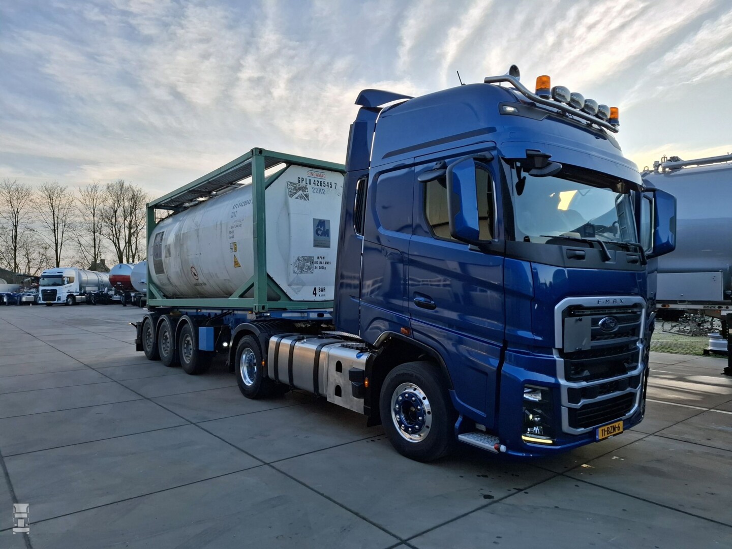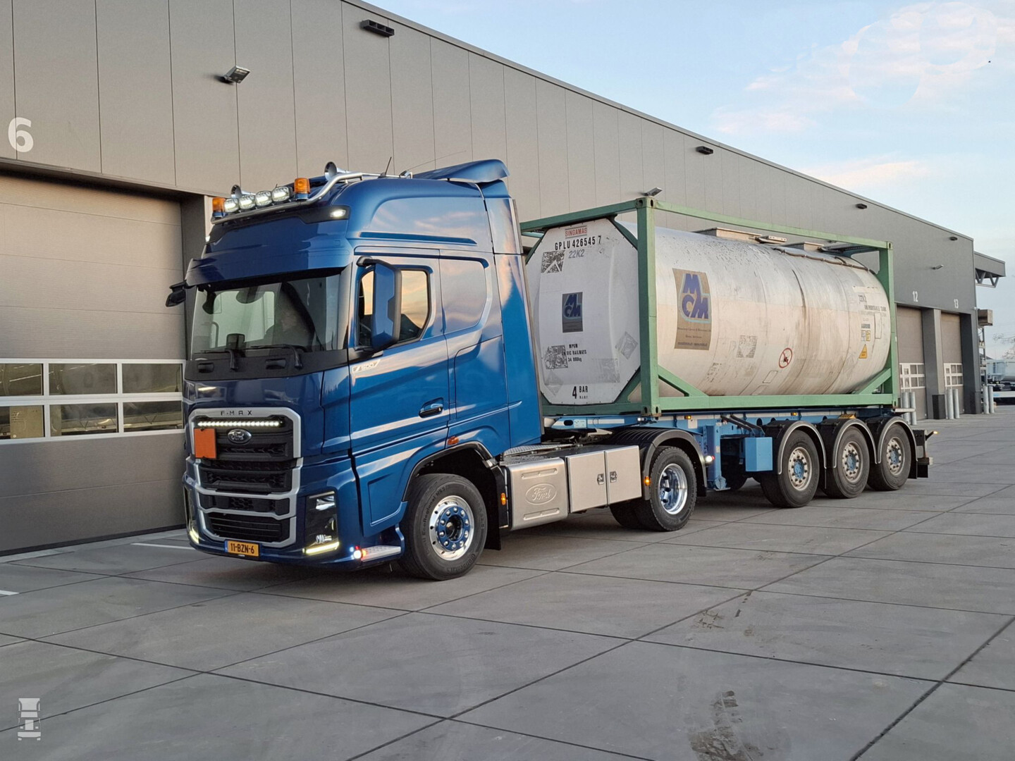 De truck werd besteld in een fraaie blauwe kleur en rondom de grille werd een zilverkleurig accent aangebracht. Met de in kleur gespoten zonneklep, een LED lichtbar in de grille en een lampenbeugel op het dak is het een fraaie trekker geworden. De truck wordt ingezet voor containertransport en is ADR gekeurd om ook met gevaarlijke stoffen te mogen rijden.