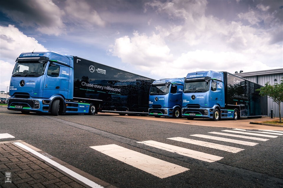 Helemaal vreemd is de keuze voor de eActros 600 natuurlijk niet, aangezien Mercedes-AMG de drijvende kracht is achter het team van Petronas. Toch is het bijzonder, want niet eerder zijn de Formule 1-wagens vervoerd met elektrische vrachtwagens. De drie exemplaren van de Mercedes-Benz eActros 600 zijn bovendien één van de allereerste op Engelse bodem.