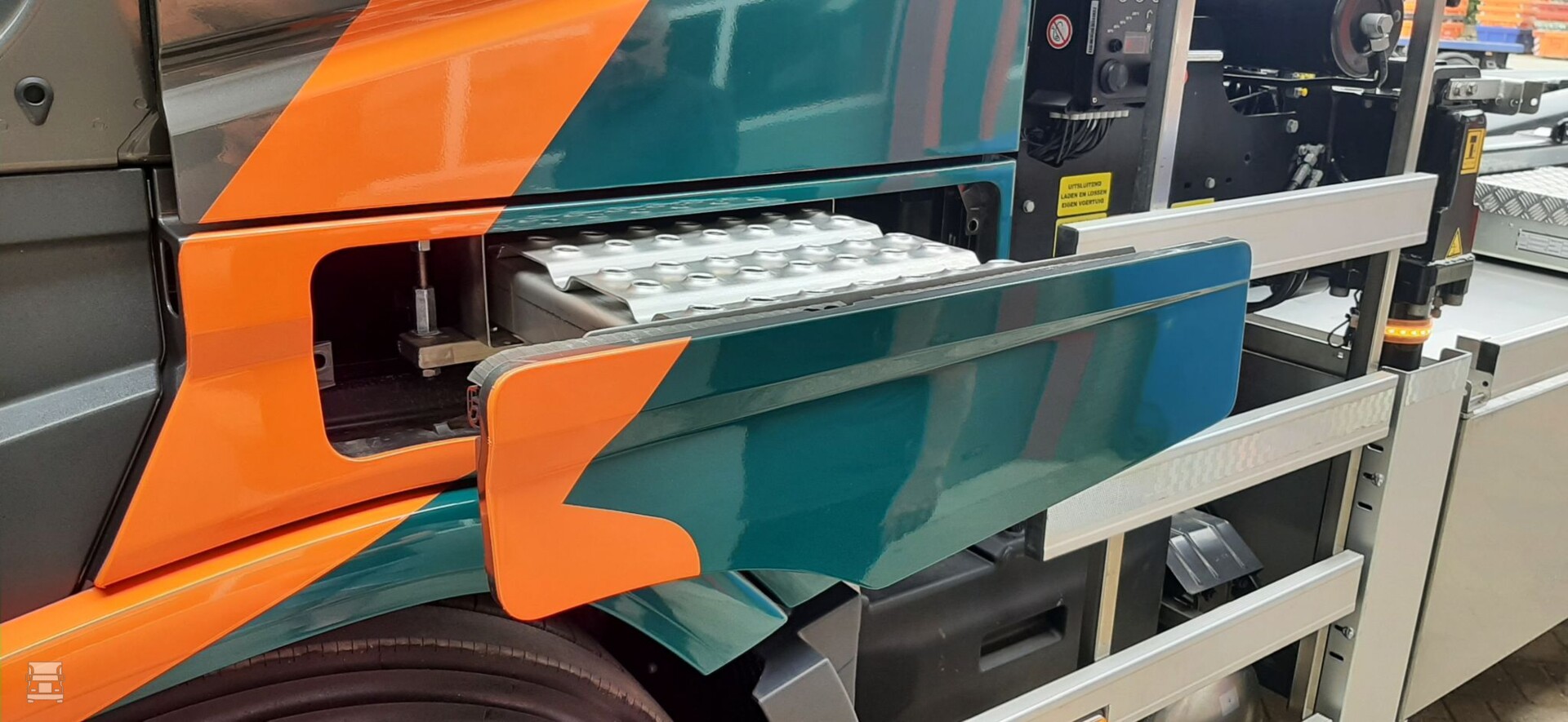 Zo'n opstapje kun je bij sommige merken gewoon bestellen, maar bij de Volvo FH modellen bestond dat nog niet. Bij Paul Metaal & Techniek in Koudekerk aan de Rijn hebben ze een pneumatisch bediende opstap ontwikkeld die in het extra gereedschap kastje van de FH cabine past. Als hij dicht is zie je er niks van, maar na een druk op de knop schuift het anti- slip opstapje keurig naar buiten. Verder is er een rail aangebracht waar je jezelf aan vast kunt houden. Een slimme vondst, waardoor je voortaan wel in je kipper kunt kijken, of naar de kraan kunt overstappen vanuit de cabine! Kijk hier onder het filmpje en lees meer via deze link!