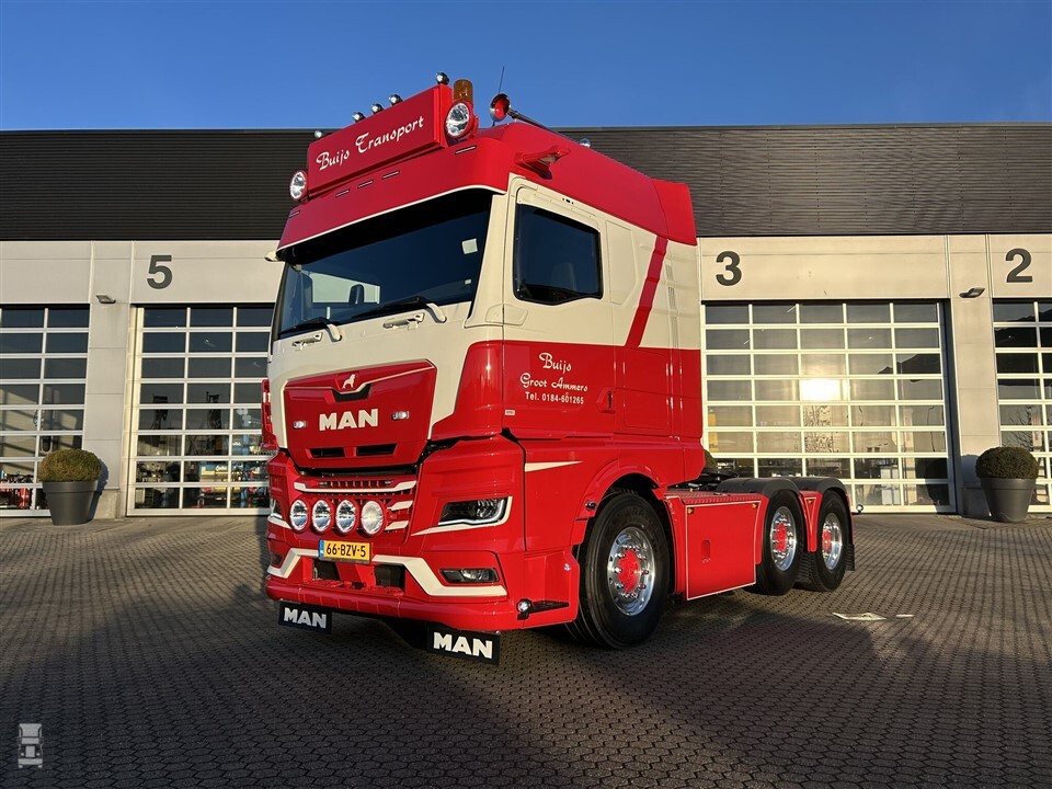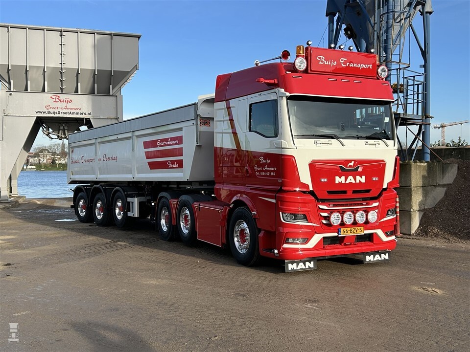 Om het span compleet te maken, hangt er achter de nieuwe MAN een eveneens nieuwe kieptrailer van AJK. Buijs Groot-Ammers is een baggerbedrijf voor overslag van bulk- en stukgoederen. Het bedrijf verzorgt transport over zowel de weg als het water. Het beschikt onder andere over mobiele loskranen, die het zelf vervoerd met een dieplader.