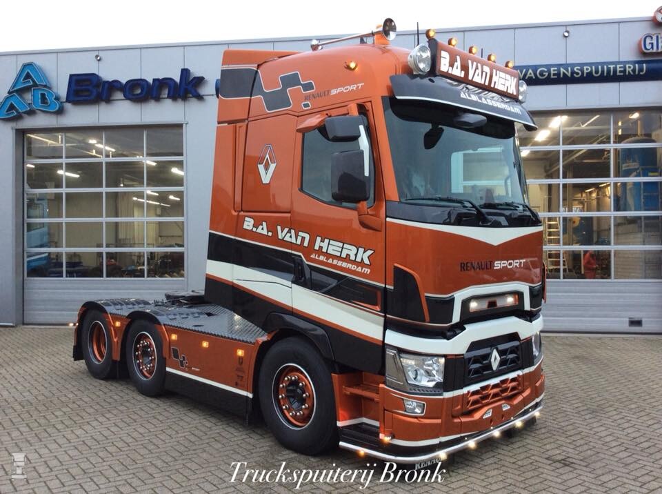 Bas van Herk heeft een nieuwe Renault Trucks High T laten ontwerpen door RTS Design. De opbouw van het plaatwerk is gedaan door las-constructiebedrijf A.C. den Hartog waarna Truckspuiterij Bronk zich er op uit mocht leven. Het resultaat mag er zeker zijn!
