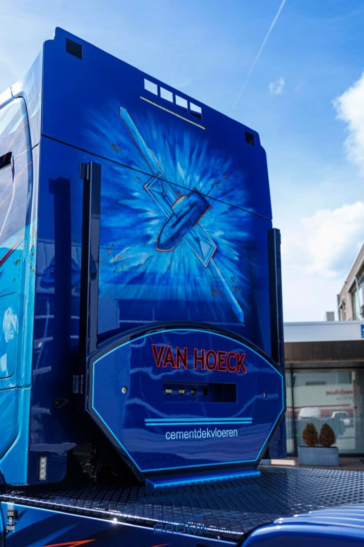 De opbouw van deze trekker werd uitgevoerd door Van Kessel Truckstyling. De truck is zeer compleet uitgerust, met onder andere een fraai slangenrek achter de cabine, een vlakke cabine- achterwand en een speciaal gemaakte achterbumper. Een stoere bullbar maakt het plaatje compleet.