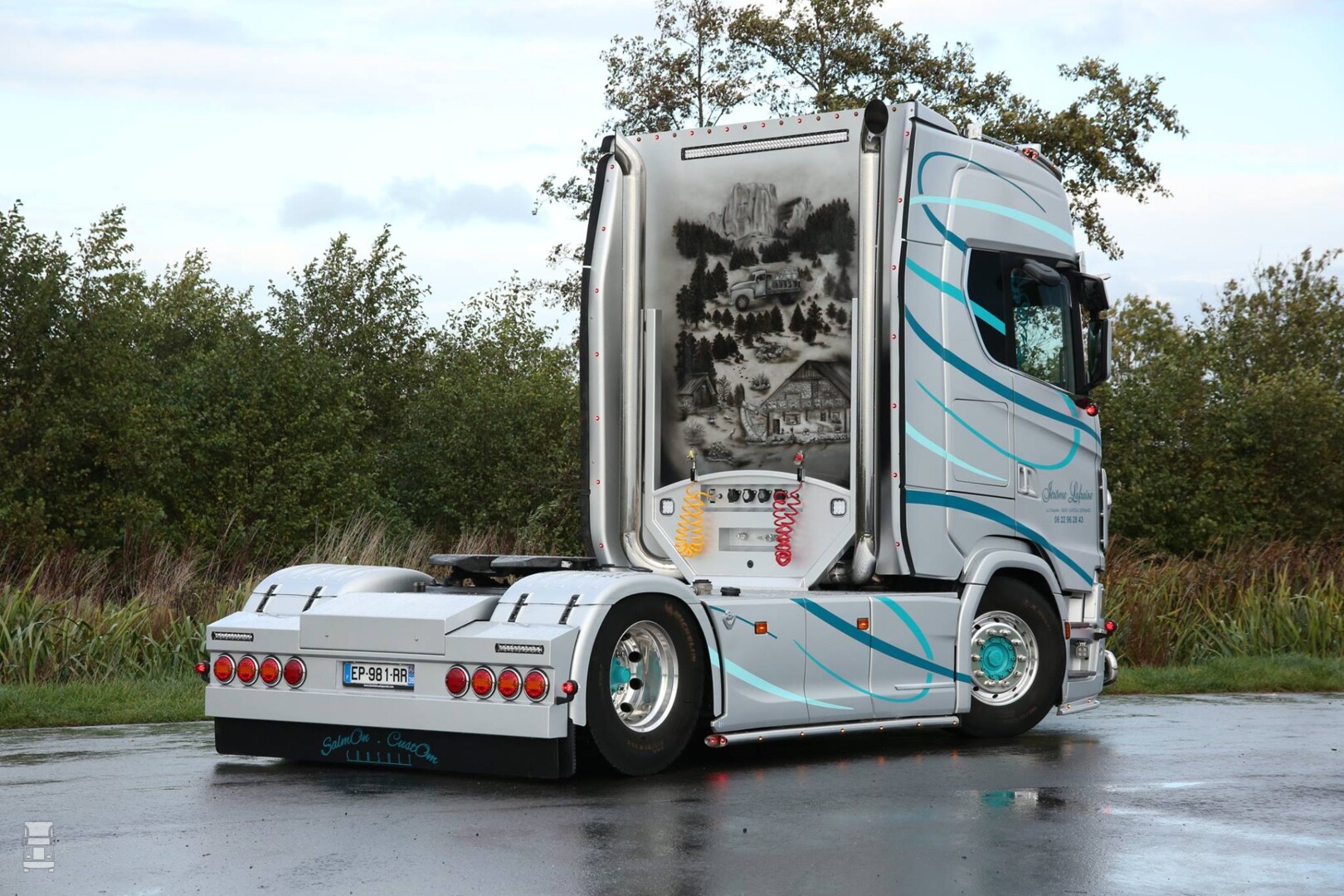 De Scania S trekker is een V8 en deze werd door Sjaak Kentie voorzien van onder meer staande uitlaten, een dichte plaat achter de cabine en de special paint die daarop is aangebracht. Ook de R- bakwagen werd door Sjaak Kentie onder handen genomen. De interieurs van de beide Scania's werden verzorgd door Special Interior in Dronten.