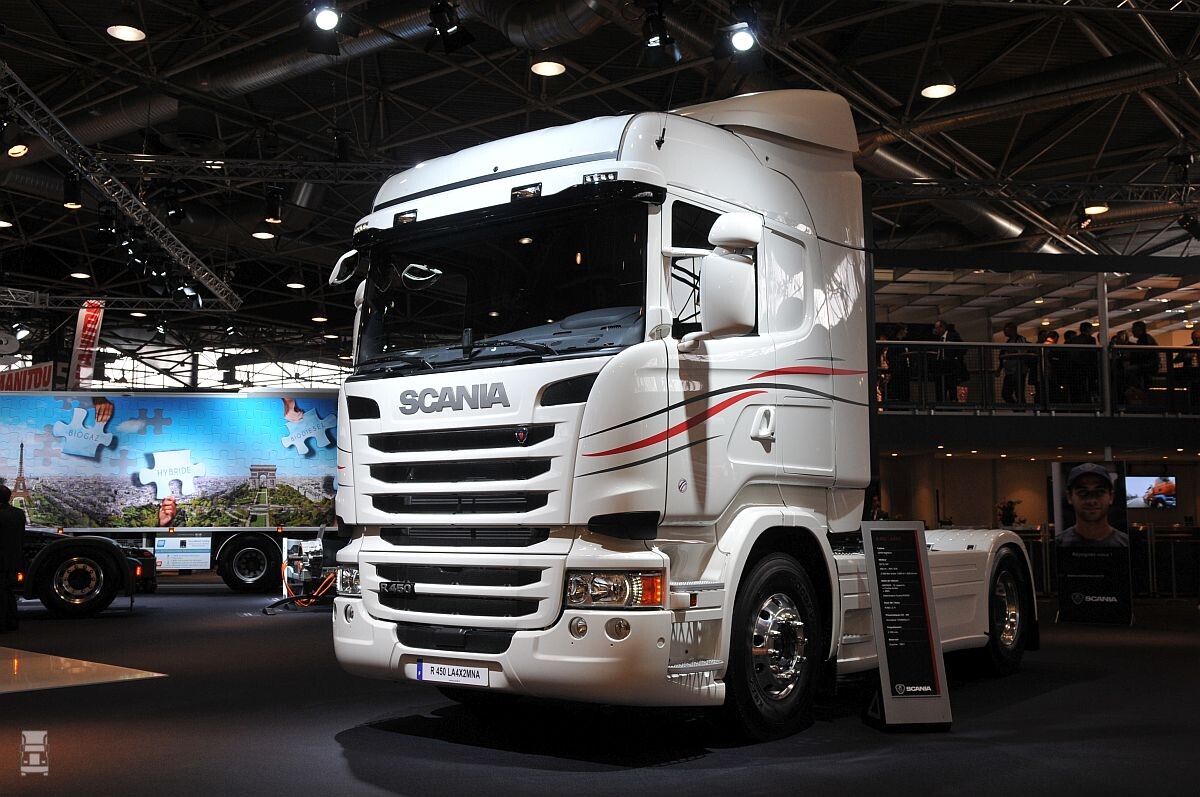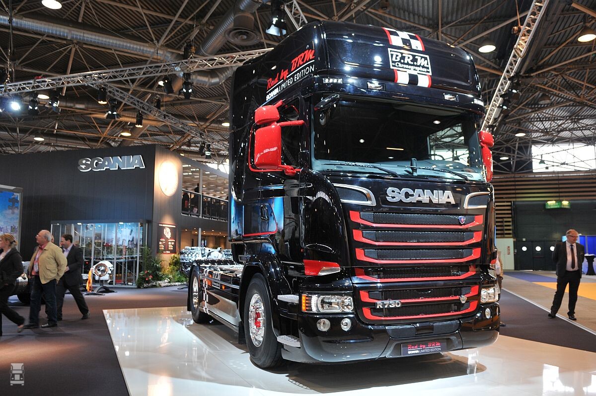 Niet alleen in Nederland, ook in Frankrijk, land dat zo in het nieuws is dezer dagen, brengt Scania op gezette tijden een Limited Edition op de markt. Kijk maar eens naar deze R730 'Red by BRM', die we tegenkwamen op Solutrans. Deze R730 is uitgevoerd in metallic zwart met rode accenten die slaan op een Franse horlogefabrikant. De Scania is voorzien van een aerodynamica-pakket en van Durabright alu wielen. Ook een verlichtingspakket ontbreekt niet en er is een Opticruise met twee pedalen gemonteerd.