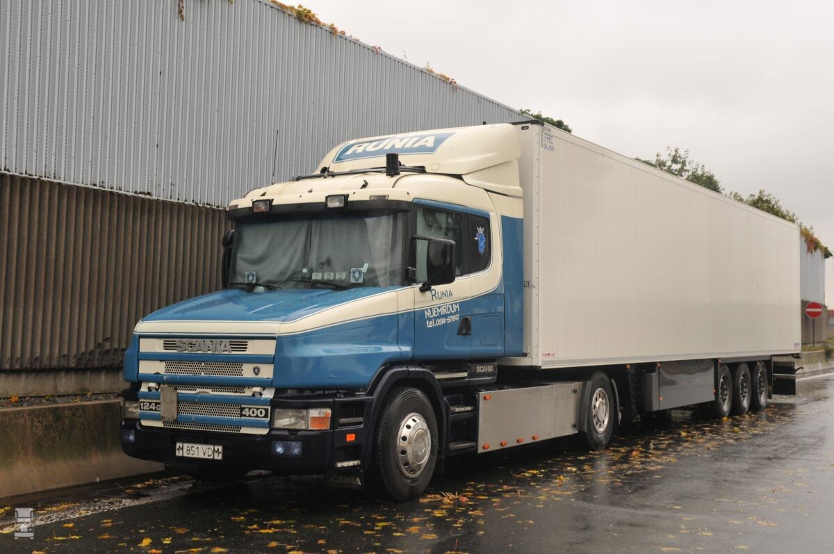 Onderweg kom je natuurlijk altijd wat tegen. Zo zagen we onlangs ter hoogte van Oberhausen deze oudgediende 4-Serie Scania T uit Friesland op vreemde platen in de kleuren van Runia.