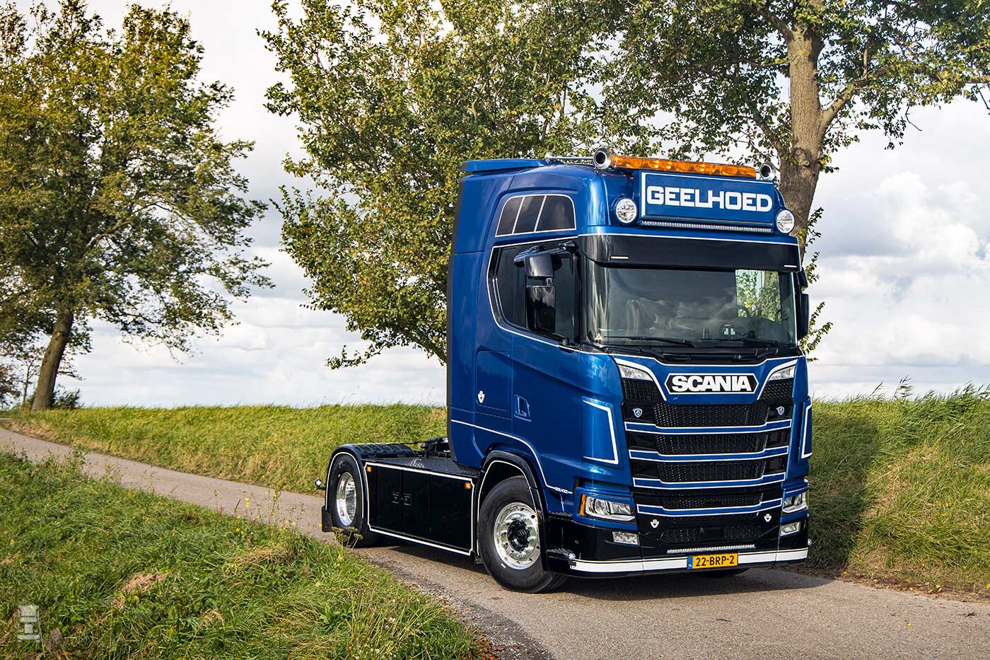 Lars en Niels Geelhoed hebben hun vader Joep verrast met een nieuwe Scania 590S. In tegenstelling tot hoe het er meestal aan toe gaat bij een familiebedrijf zit vader Joep op de truck en zijn beide zonen op kantoor!