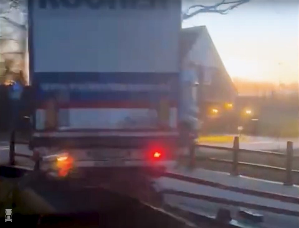 Het filmpje toont hoe de chauffeur zich niet laat tegenhouden. Zijn oplegger komt klem te zitten tegen een boom, maar de chauffeur steekt achteruit en ramt zijn combinatie erlangs. Hierbij vaagt de achterkant van de trailer de complete railing van de brug. Ook de boom raakt zwaar beschadigd. Van Well heeft ondertussen al 112 aan de lijn. Het is onbekend of de vrachtwagen ergens staande gehouden is. De politie heeft contact met het transportbedrijf gehad. Volgens de gemeente Dordrecht zullen alle kosten op de chauffeur worden verhaald.