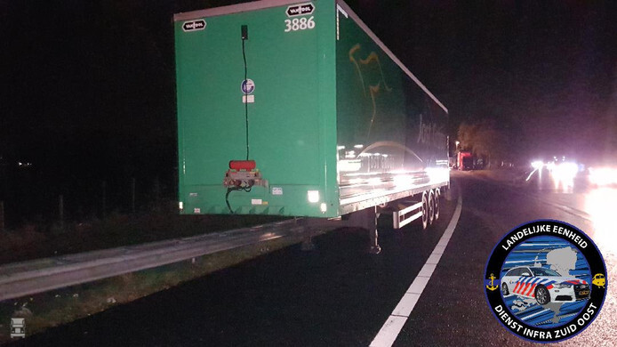 Gisteravond trof de politie een afgekoppelde oplegger aan op de vluchtstrook van de A67. De vluchtstrook is levensgevaarlijk, en zeker als daar onverlichte objecten staan. Na een zoektocht vond de politie de trekker van Jost die bij de oplegger hoort. De chauffeur had een klein plekje gevonden om te parkeren, maar daar pastte de oplegger niet in.