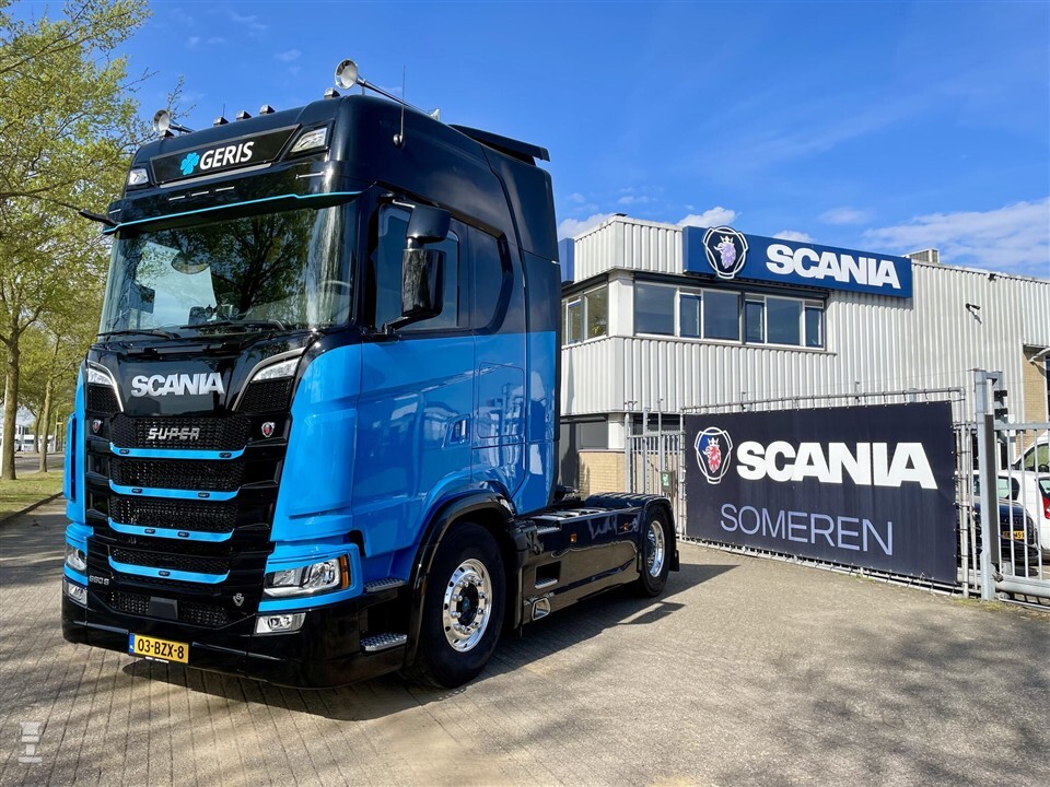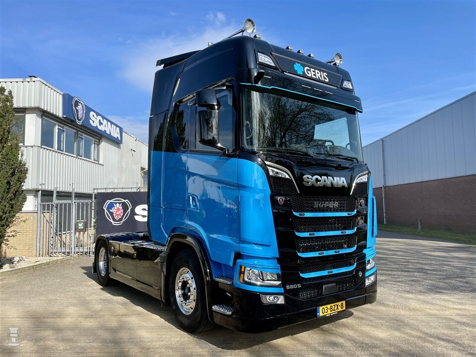 De Scania 660S V8 valt zeker in deze categorie. Ondanks het bordje Super op de grille ligt er toch echt een V8 onder de cabine. Scania Someren leverde hem af compleet met King of the Road pakket, Alcoa Durabright velgen en digitaal dashboard. De 4x2 trekker werd voorzien van verschillende accessoires zoals wat extra lampjes en flinke luchthoorns. De Scania oogt stoer in de zwart met blauwe kleuren, gespoten door TCD Kelpen.