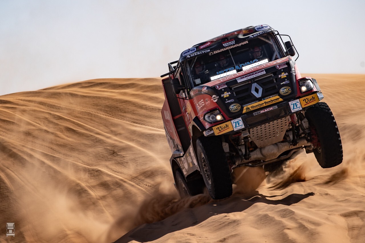 Op de 410 kilometer lange proef stuurde Martin de Renault Sherpa zonder problemen over de piste. De gevarieerde route bracht de rijders vandaag in het Lege Kwartier. In het gebied van 650.000 vierkante kilometer, dat zich uitstrekt over Saoedi-Arabië, Jemen, Oman en de Verenigde Arabische Emiraten, ligt de grootste ononderbroken zandwoestijn ter wereld. Naast zand en duinen kregen de rijders ook weer stenen voor de kiezen. ,,Wij hebben ons tempo iets aangepast en wilden geen verdere schade oplopen. We hebben het hoofd er goed bijgehouden,’’ aldus Martin. ,,We vertrokken vanochtend uit het bivak met een lager dat kapot was. Dat was nog van maandag. Vanochtend was er geen tijd om het te repareren. Het lager was lek en daarom moesten we om de 100 kilometer stoppen om olie bij te vullen. Dus met die wetenschap ben ik niet ontevreden over het resultaat van vandaag.’’