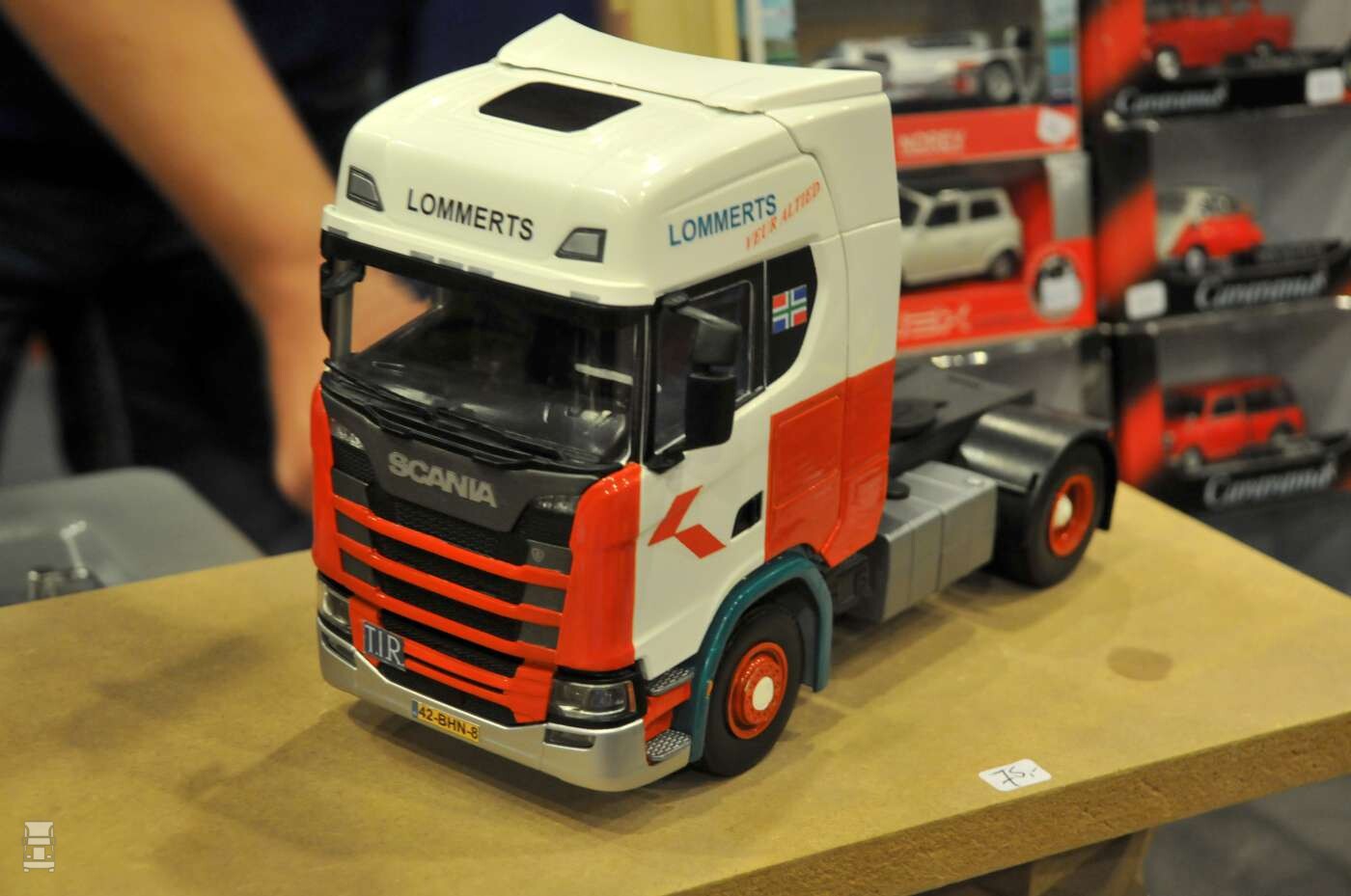 Van landbouwmachines tot personenauto's en vrachtwagens in allerlei schalen waren er te zien en te koop. Opvallend is de populariteit van Lommerts uit Delfzijl. Er stond niet alleen een echte Volvo F88 voor de deur, ook binnen waren er verschillende standhouders te zien met Lommerts schaalmodellen. Zelfs het nieuwste model van Scania was te bewonderen in de bekende kleuren. Merkwaardig, want dit bedrijf bestaat al jaren niet meer. Toch mooi om te zien dat de oude transporthistorie zo levend gehouden wordt.
