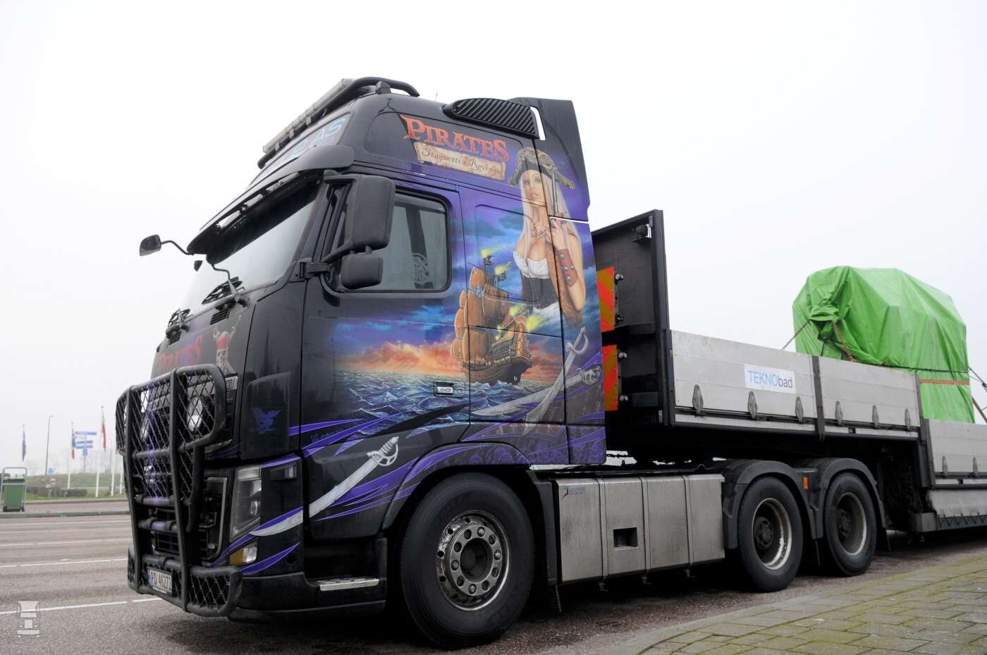 Deze stoere Volvo FH16 trof ik vandaag aan bij truckstop De Zingende Wielen in Noord Holland. De truck is naar goed Noors gebruik in deze tijd van het jaar erg vies, maar de special paint afbeeldingen spreken zelfs dan tot de verbeelding.