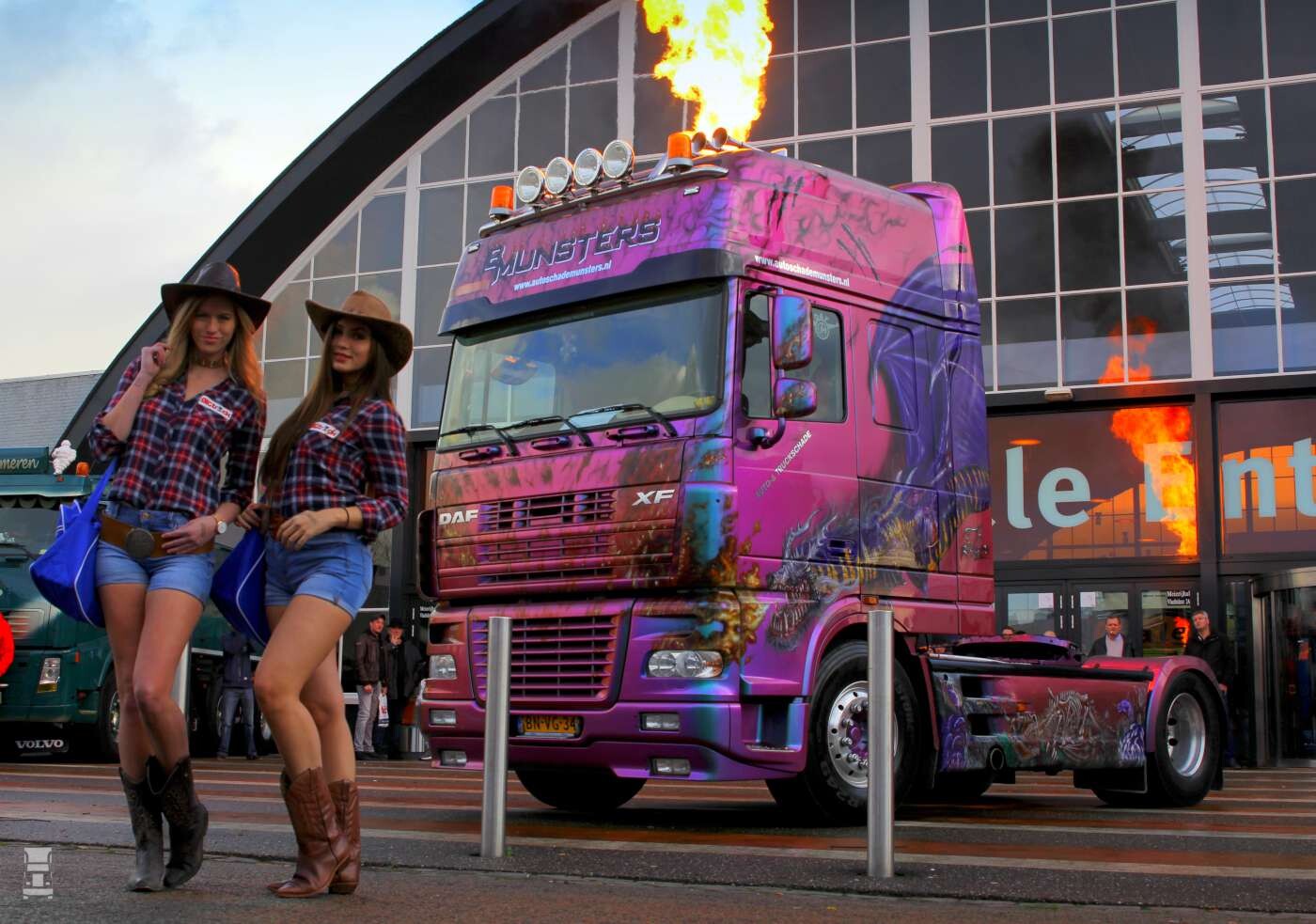 De dames delen flyers uit voor ons eigen evenement en de reacties zijn fantastisch. Intussen zijn in de Brabanthallen trucks te zien van alle merken, maar Scania springt er wel uit met een enorm aantal nieuwe modellen. Ook de DAF showstraat is weer keurig geregeld door de lokale dealer, Van Hooft.