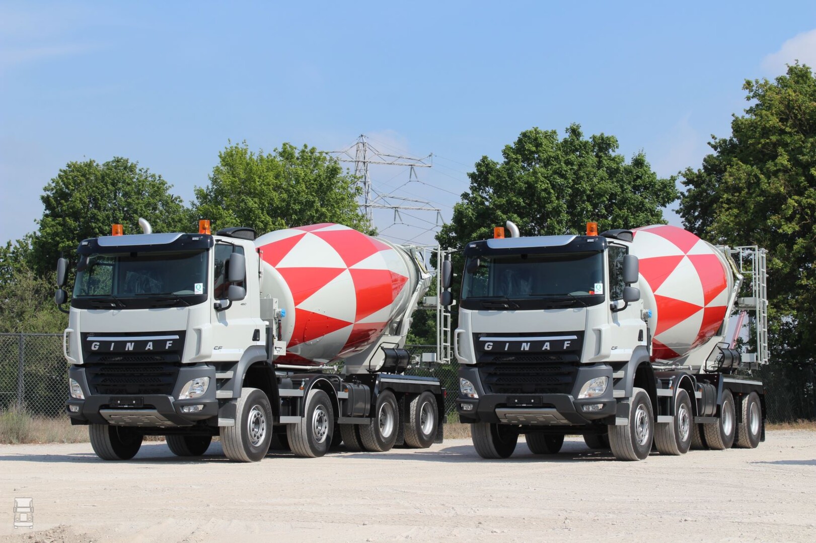 Het gaat om GINAF X6 4243 S trucks met een widespread asopstelling en een betonmixer opbouw. Het widespread tandem is voorzien van GINAF’s HPVS (Hydro Pneumatisch VeerSysteem) en EVS (Elektronisch Voertuig Stuursysteem).