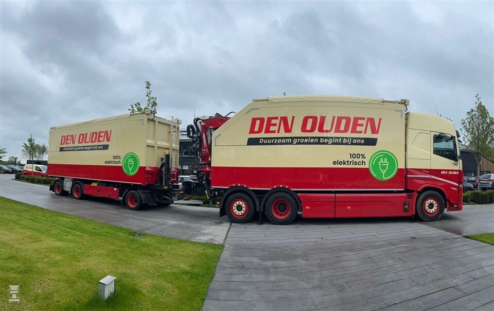 De basis van de nieuwe kraanwagencombinatie van Den Ouden vormt een Volvo FH Electric bakwagen. Tijdens het rijden stoot deze uiteraard geen schadelijke stoffen uit, maar ook tijdens het laden en lossen is de combinatie emissievrij. De Penz-laadkraan en de Jumbo Kipper-aanhangwagen werken namelijk ook volledig elektrisch. De combinatie is ontwikkeld en opgebouwd samen met BAS Truck Center Veghel, Van Rijssel Carrosseriebedrijf en Wierda Hybrid Technologies.