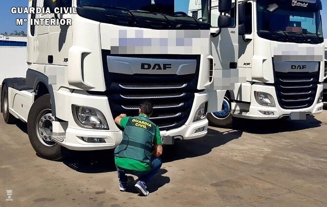 Op de foto's van de Guardia Civil zien we Euro6 DAF trucks, maar ook analoge tachografen. Verder een bonte verzameling elektronische apparatuur die te maken heeft met de manipulatie van tacho's. Een mooie en succesvolle actie dus van de Spanjaarden, maar het is zorgelijk dat er zo veel van dit soort gemanipuleerde trucks zijn aangetroffen.