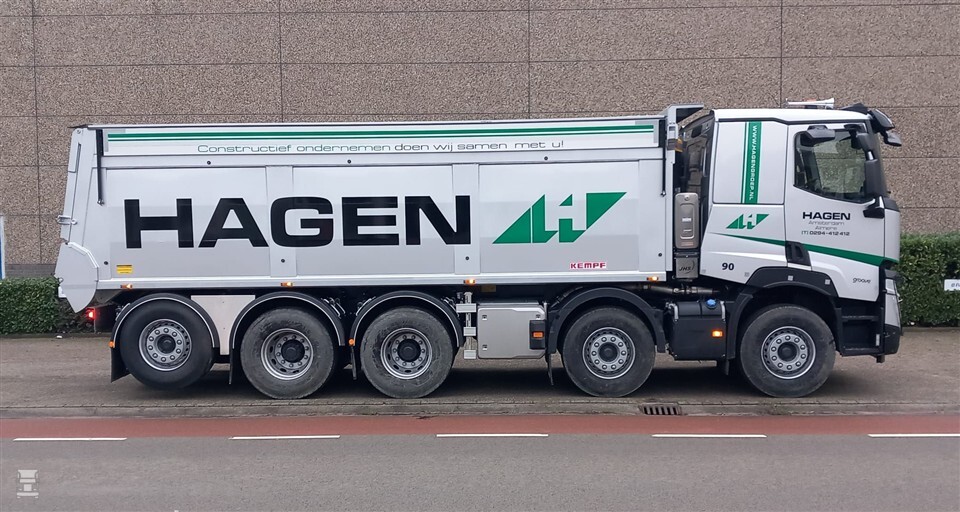 Hagen Groep, met vestigingen in Weesp en Almere, heeft nu het eerste exemplaar in ontvangst genomen. De Renault is opgebouwd als kipper, met een achteroverkipper van Kempf. De achteras van de Renault 10x4 is zowel hefbaar als gestuurd. Hagen Groep gaat de Renault kipper voornamelijk inzetten in de Randstad. Ongetwijfeld gaan we in de toekomst meer Renault vijfassers zien in ons land.