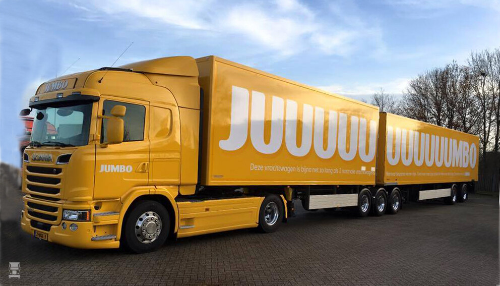 Jumbo Supermarkten lijkt toch weer LZV combinaties in te gaan zetten. Jumbo liep ooit voorop met LZV's maar schakelde later over op dubbeldekkers.