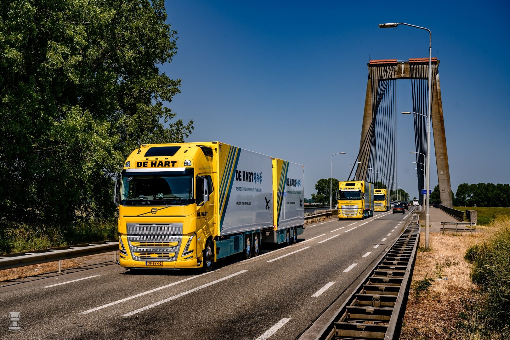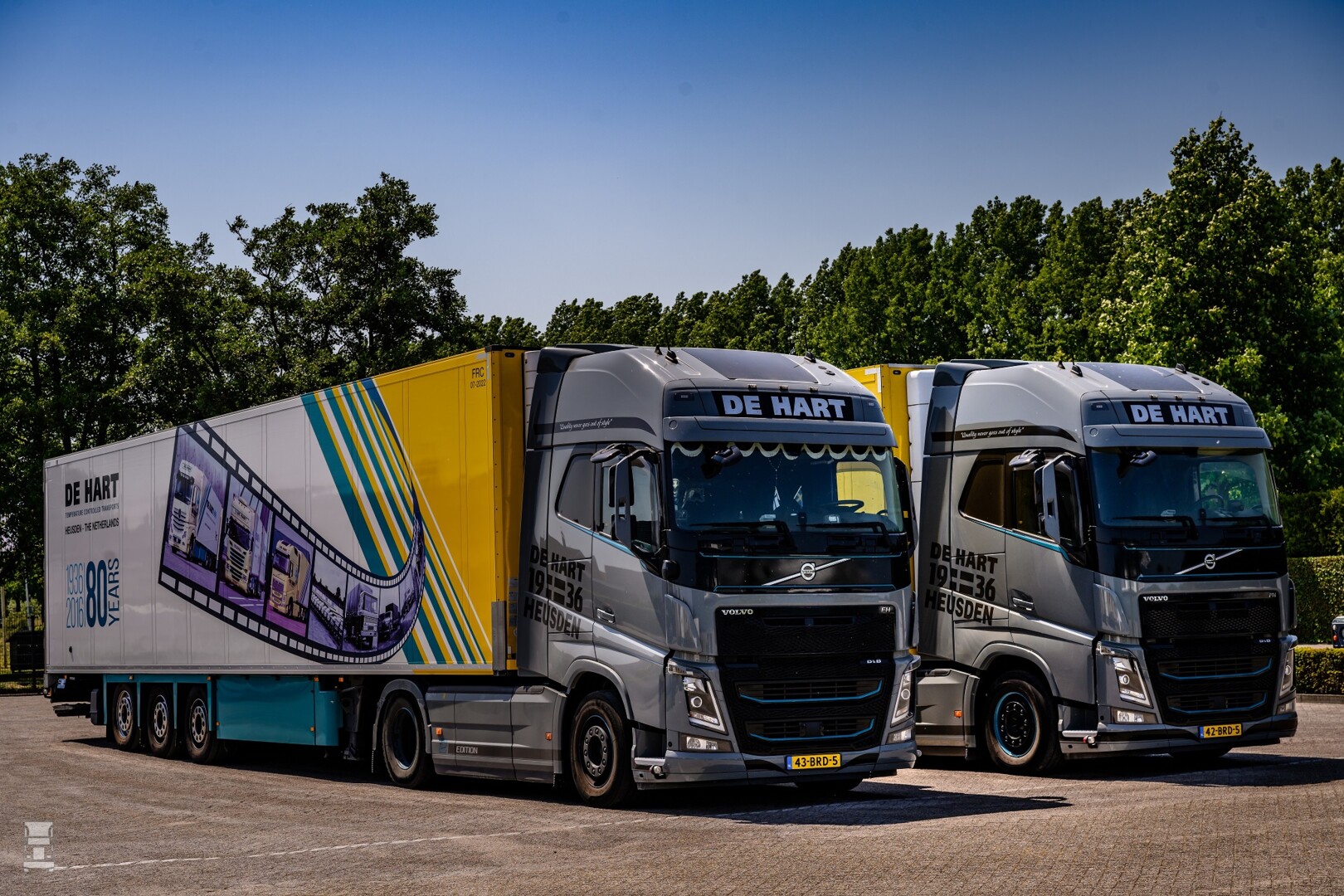 De Hart heeft nu achttien trucks in de vloot, waarvan vijftien Volvo-trucks. De laatste jaren is het aandeel Volvo-trucks steeds groter geworden. Alleen al dit jaar neemt De Hart vijf nieuwe Volvotrucks in gebruik: twee Volvo FH 500 6x2-motorwagens en drie Volvo FH 4x2-trekkers. De Volvo FH combi’s zijn, in combinatie met 2-assige dolly en 3-assige trailer, goedgekeurd voor LZV-inzet in Nederland en Duitsland. De aankoop van de trucks is zowel vervanging als uitbreiding.