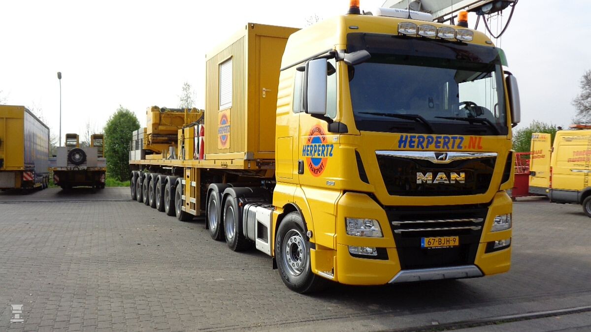 Kraanverhuurder Herpertz uit het Limburgse Heythuysen heeft onlangs een MAN TGX 26.640 6x4 BLS zwaar transporttrekker aangeschaft. Dit is de sterkste MAN die geleverd kan worden, en dan ook nog eens met twee aangedreven assen, voor een gebalanceerde overbrenging van een grote hoeveelheid kracht.