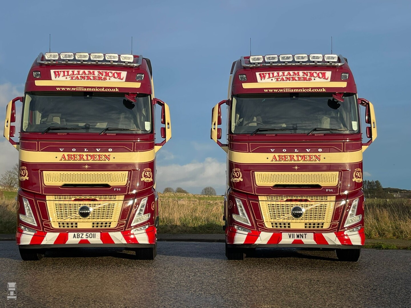 Volvo Truck and Bus Center North & Scotland verkocht deze twee Volvo FH Aero sleepas trekkers. De Globetrotter XL cabines zijn uitgevoerd in zo'n typische, klassieke livery en dat staat ook de Aero modellen erg goed. Kenmerkend zijn de rode bumper met witte strepen, de vlakverdeling met dunne lijntjes en de klassieke lettertekens. Afgezien van een lampenbeugel met zes daklampen zijn de trucks verder vrij standaard gehouden, maar veel meer hoeft er ook echt niet op als je het ons vraagt.