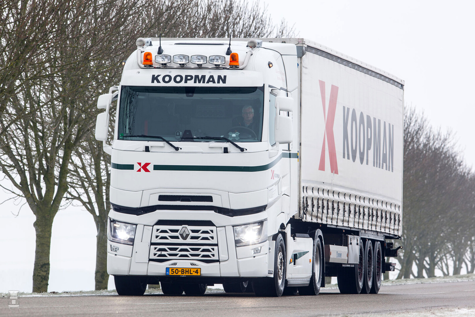 De nieuwe Renault T High Sleeper Cab van Kloosterhuis is een imposante verschijning. De verhoogde slaapcabine is geheel wit gespoten en voorzien van een highbar met vier verstralers en twee zwaailampen. Twee van de vier aluminium gesmede Alcoa-wielen worden aangedreven door een 13-liter Euro 6-motor met commonrail inspuiting en een vermogen van 520 pk, de krachtigste versie uit het T-gamma van Renault Trucks. Standaard is de trekker voorzien van de geautomatiseerde Optidriver-versnellingsbak en vele veiligheidsopties. Aanvullend is het voertuig uitgerust met het Pack Protect bestaande uit een bandenspanningscontrolesysteem, extra bochtenverlichting, adapative cruise control, noodremlichten, automatische koplampen en ruitenwissers en Xenon koplampen.