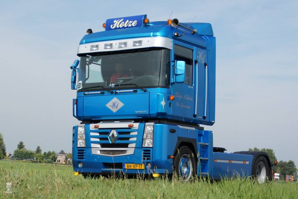 Eigenrijder Hotze Adema begon ooit als met een Renault Magnum. Na jarenlang plezier van die prachtige Fransoos stapte hij over naar een Volvo, maar het bloed kruipt waar het niet gaan kan. Toen er een nieuwe trekker moest komen werd het uiteindelijk toch weer een Renault, en dan wel de High-T uitvoering.