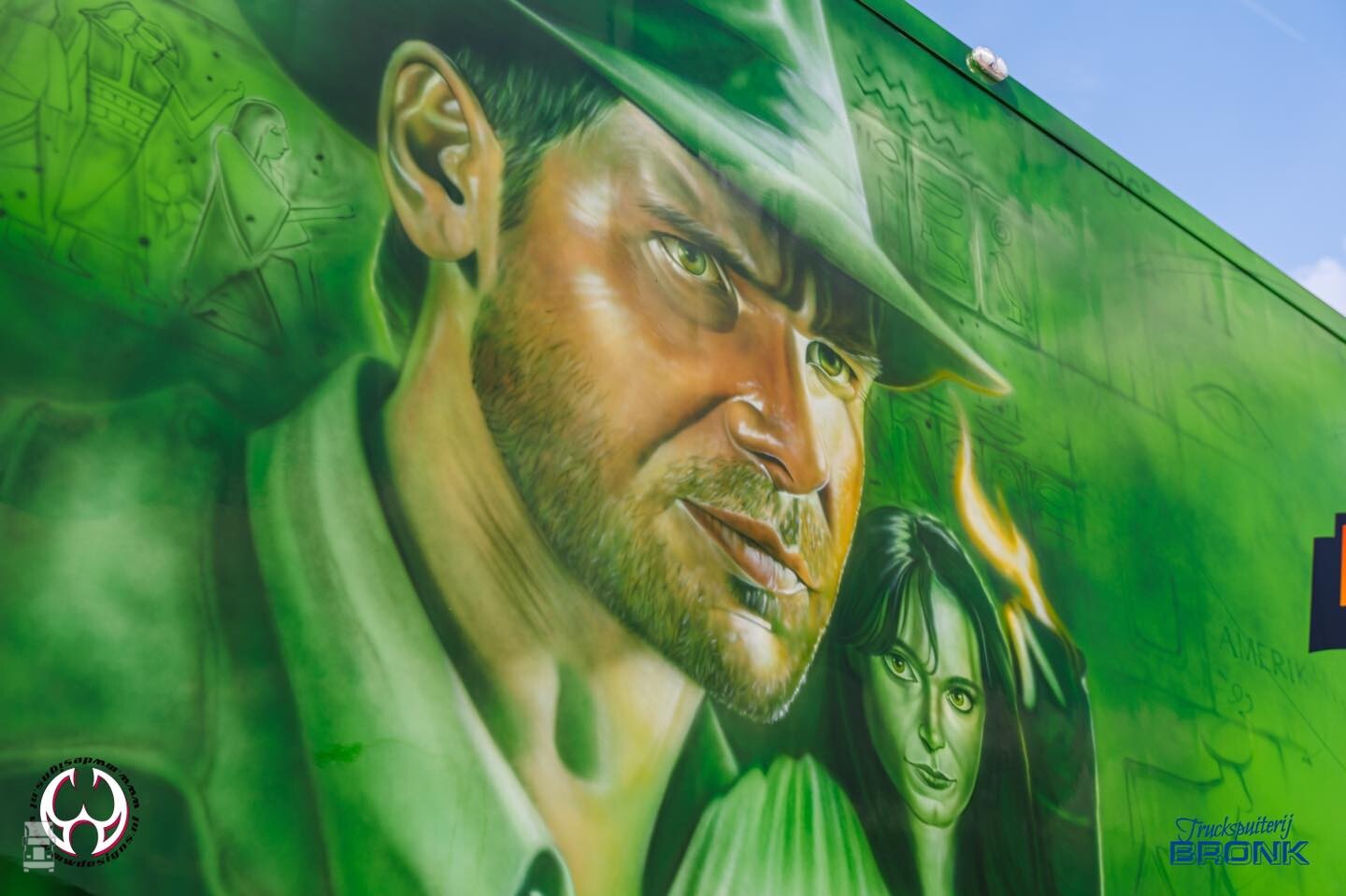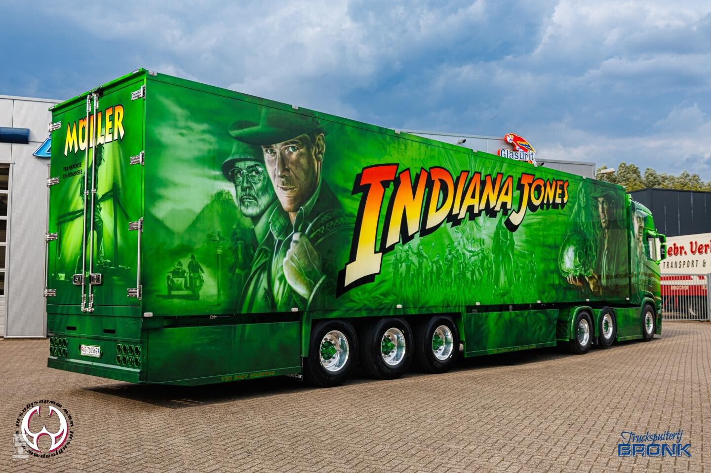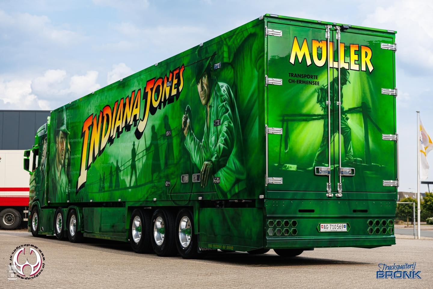 De nieuwe Scania 660S Highline met oplegger werd compleet voorzien van special paint in het thema van Indiana Jones. De aandacht voor details is fantastisch in het airbrush werk van MWDesigns. De basiskleur en de blanke lak werden verzorgd door Truckspuiterij Bronk. De combinatie is niet te missen met zijn felle kleuren en zal aankomend weekend te zien zijn in Assen. De foto's spreken voor zich zelf!